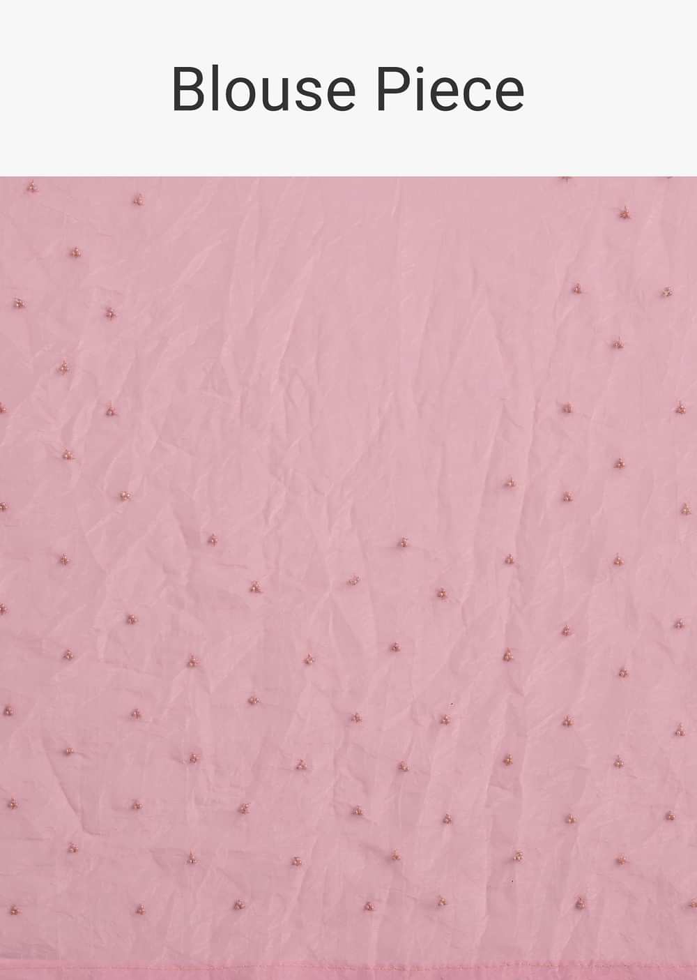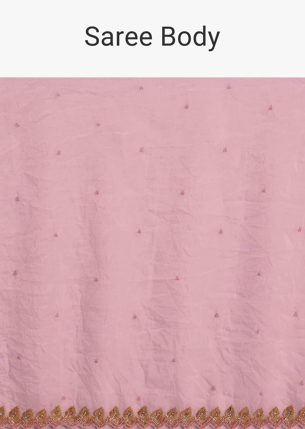 Light Pink Tissue Embroidered Saree With Cutwork Scallop Border