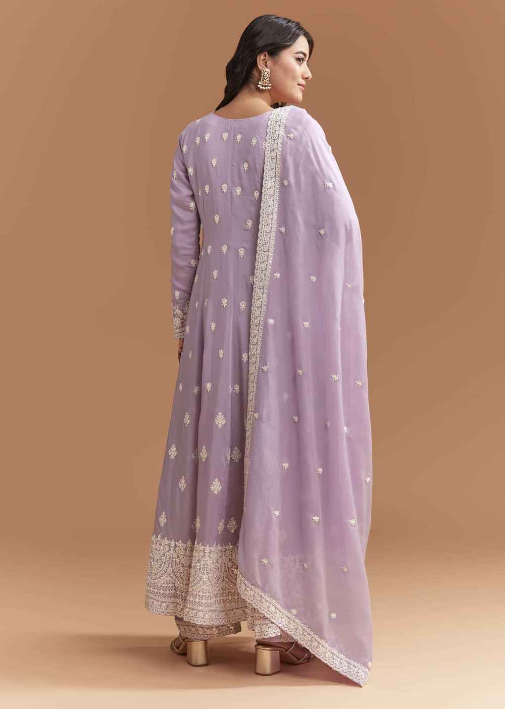 Lilac Cotton Anarkali Suit With Delicate Thread Work