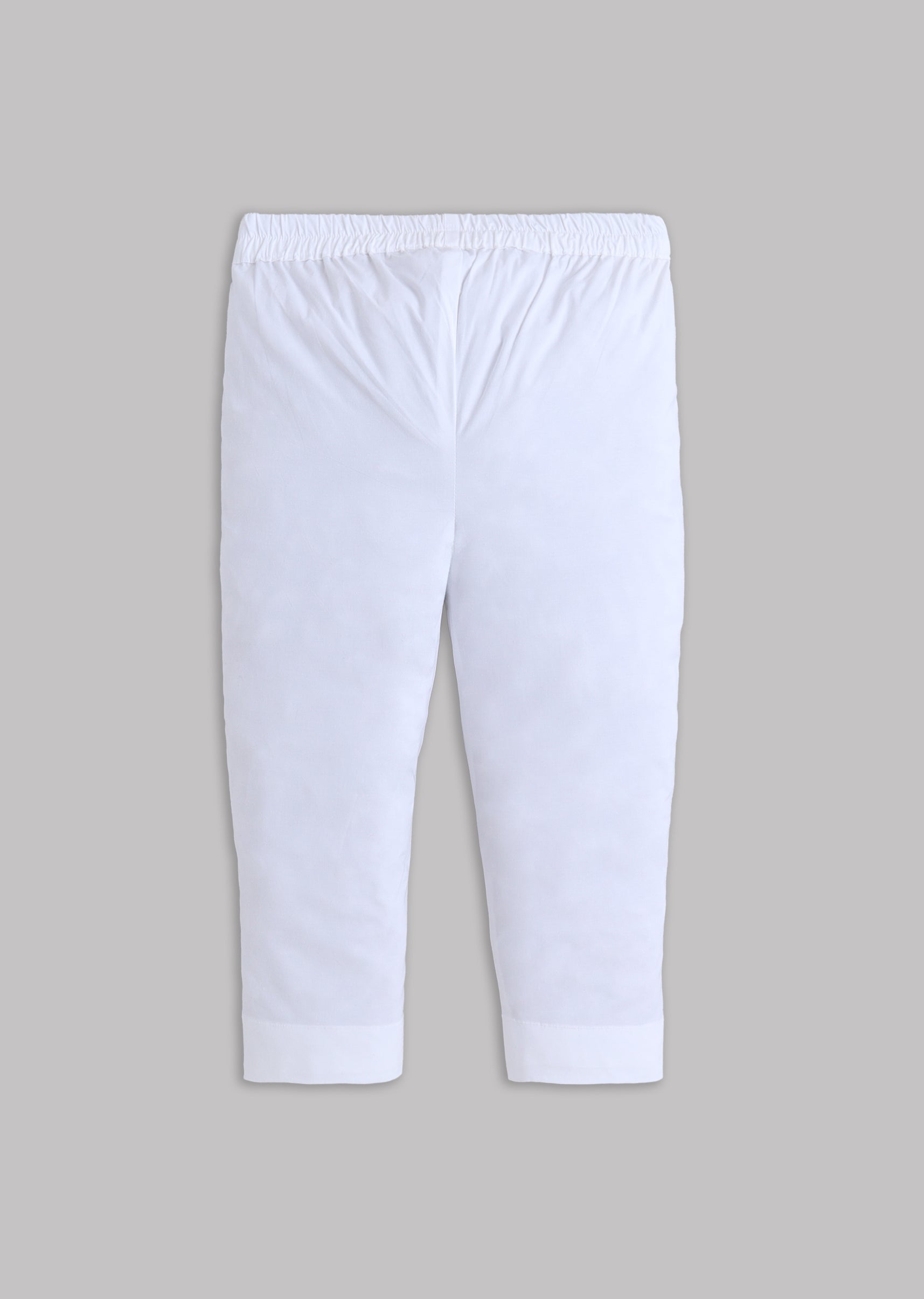 Add a neutral stole or light-colored mojaris to keep the look clean and festive.
