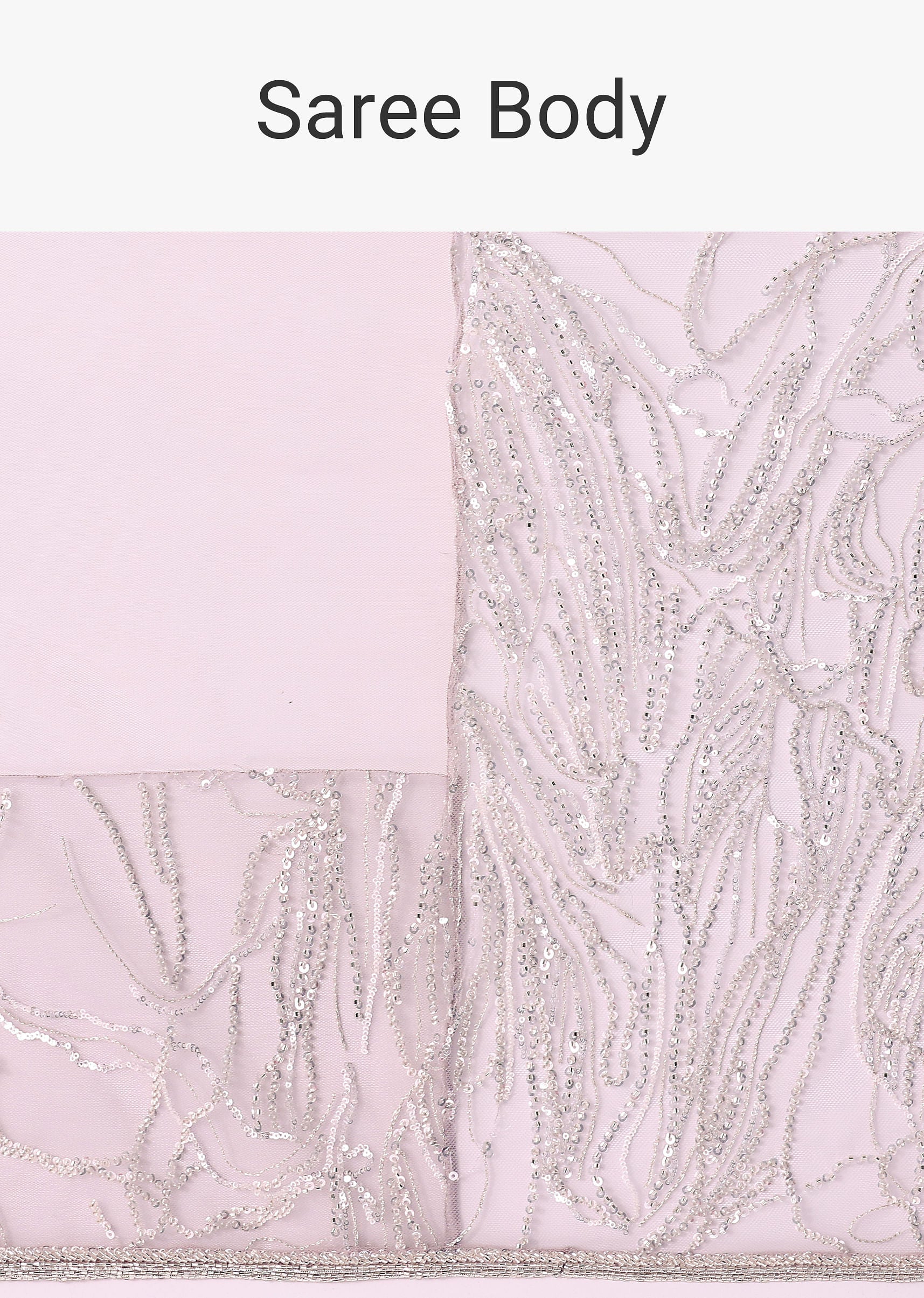 This captivating lilac sequence net saree shimmers with exquisite embellishments, while the ruched blouse adds a touch of romantic texture. A perfect ensemble to steal the spotlight at your sangeet.... More Product Details