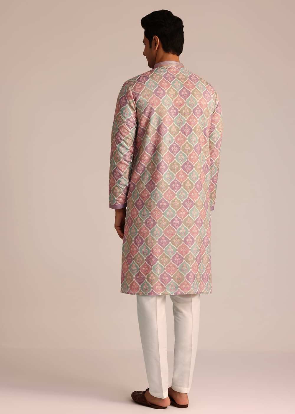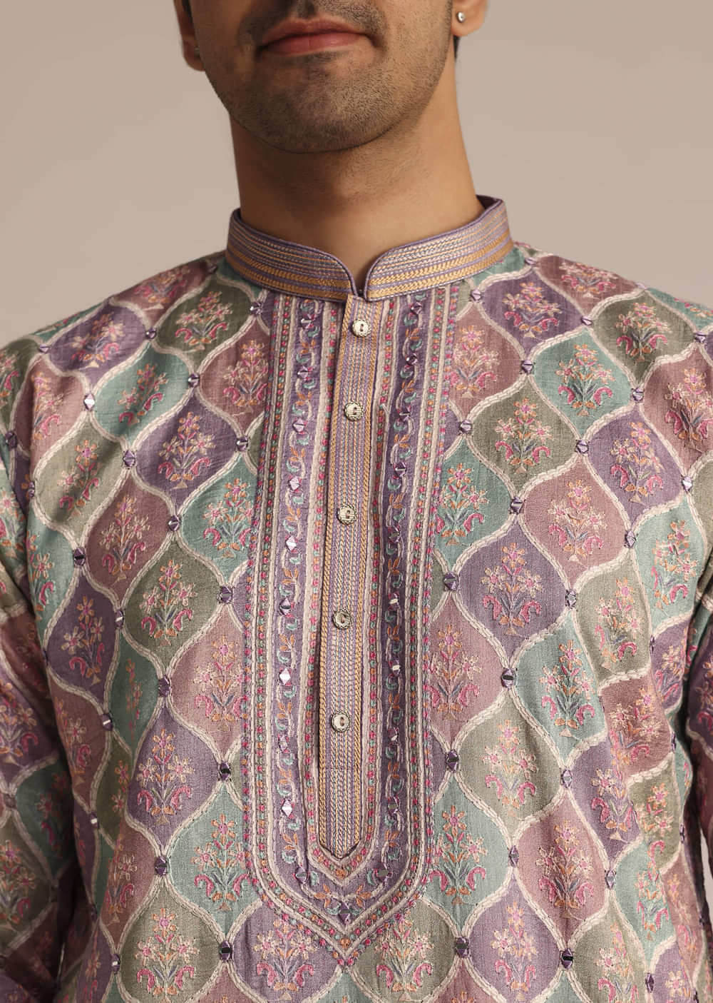 Step Into A World Of Refined Elegance With This Lilac Embroidered Silk Kurta Set Featuring Intricate Patterns That Exude Contemporary Charm. The Soft Silk Fabric Offers A Luxurious Feel While The Playful embroiderey Adds A Vibrant Touch Making It Ideal For Festive Gatherings Casual Celebrations And Daytime Events. A Perfect Blend Of Comfort And Style This Ensemble Is A Standout Addition To Your Ethnic Wardrobe. Awarded as the Most Trusted Brand, we're delivering styles you love, just as promised.