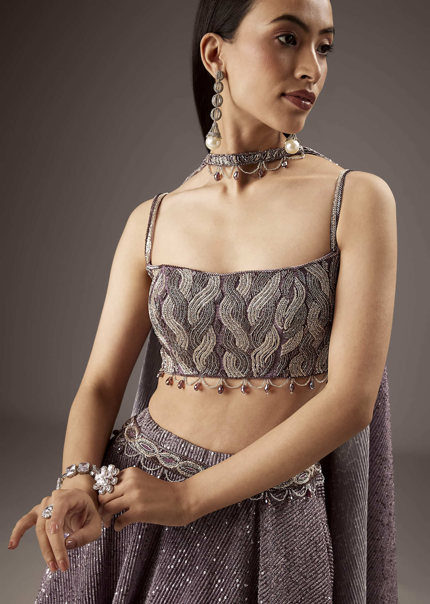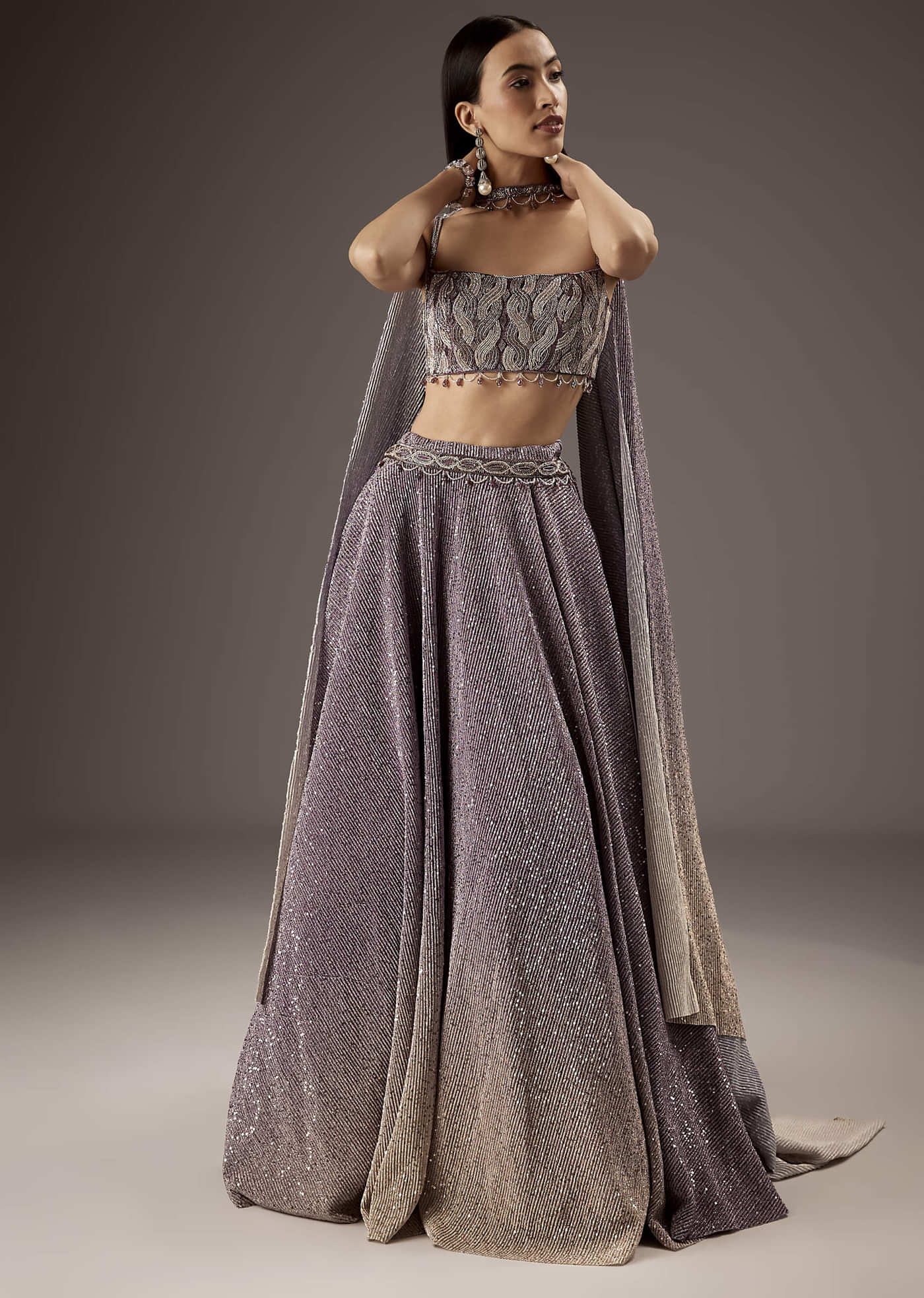Butter-soft crepe in lilac purple paired with a hand work embellished blouse makes this lehenga a total charmer. Perfect for sangeet, reception, or cocktail celebrations. Awarded as the Most Trusted... More Product Details