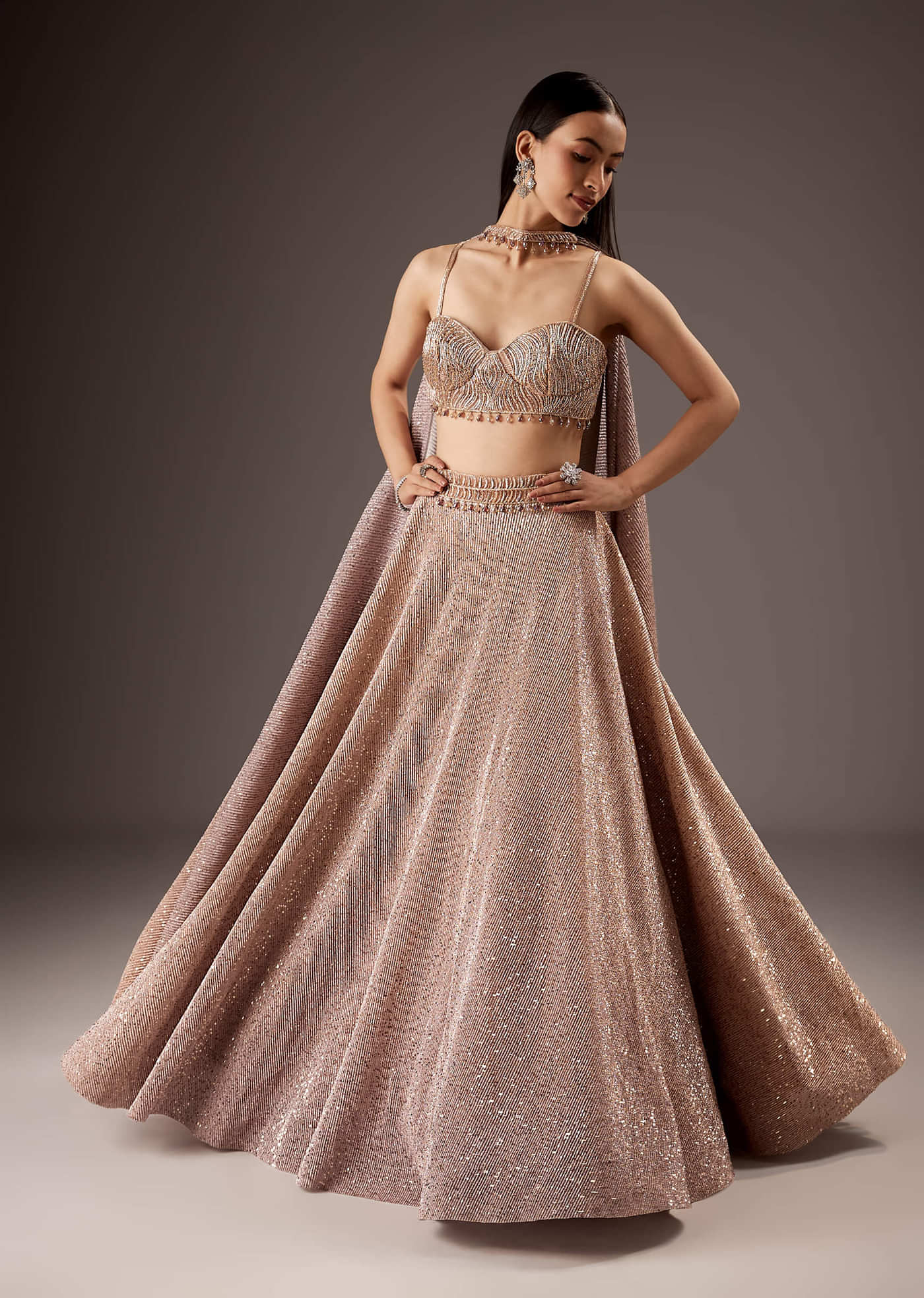 Lilac Purple Fancy Bridesmaid Lehenga With Elegant Choker Cape Dupatta