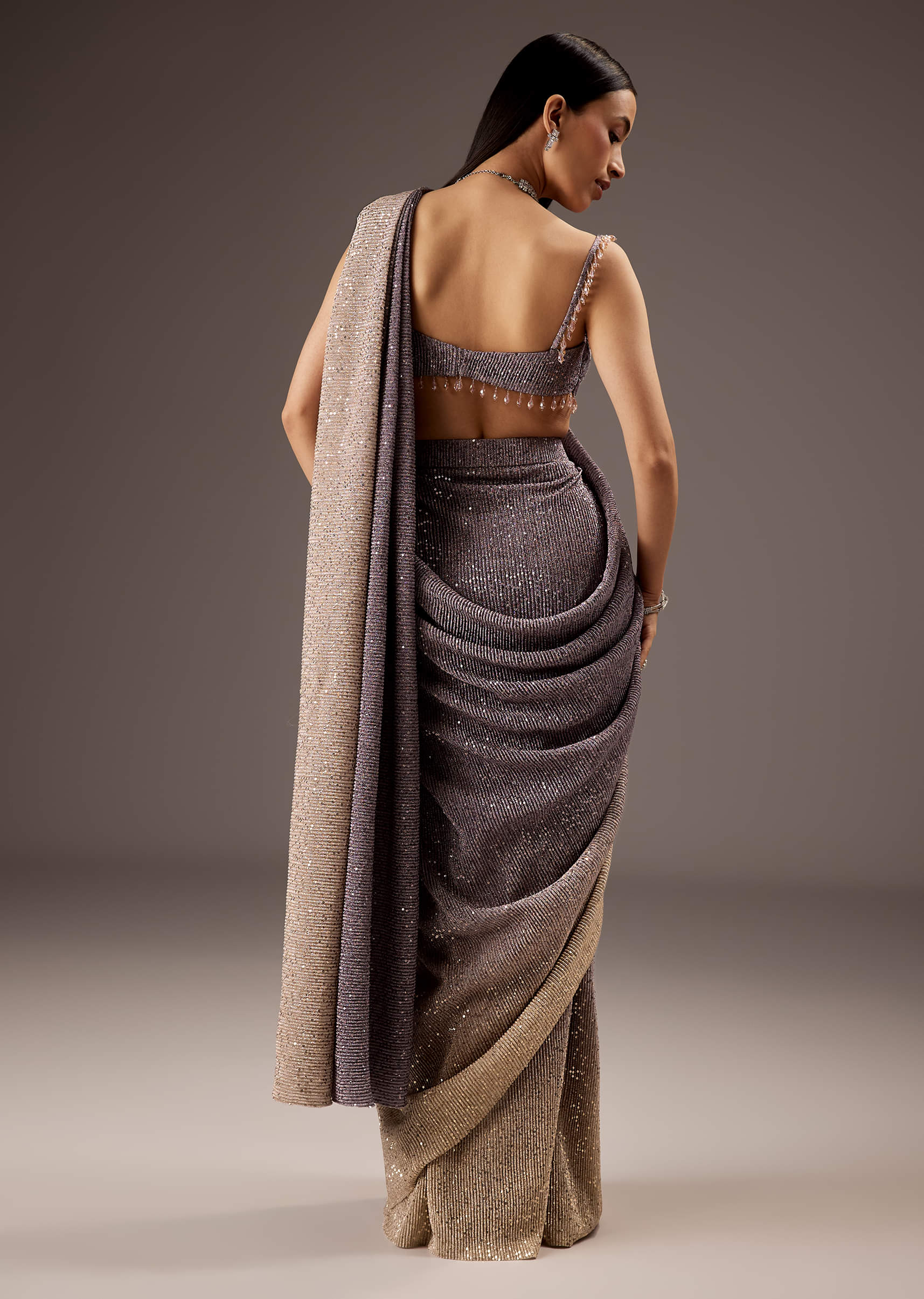 Lilac Purple Saree With Layered Blouse And Elegant Tassels