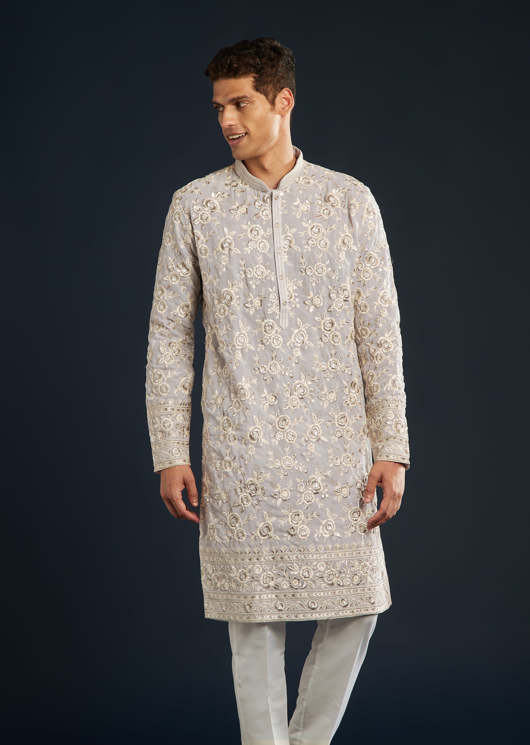 Celebrate heritage with a contemporary twist in this lilac men’s kurta set, inspired by USA’s artisanal craftsmanship. Intricate resham sequin embroidery adds subtle sparkle and textured, creating an eye-catching look. Featuring a mandarin collar, full-length sleeves, and co-ordinating classic pants, the ensemble is deal for weddings, festive occasions, and special gatherings. Awarded as the Most Trusted Brand, we're delivering styles you love, just as promised.