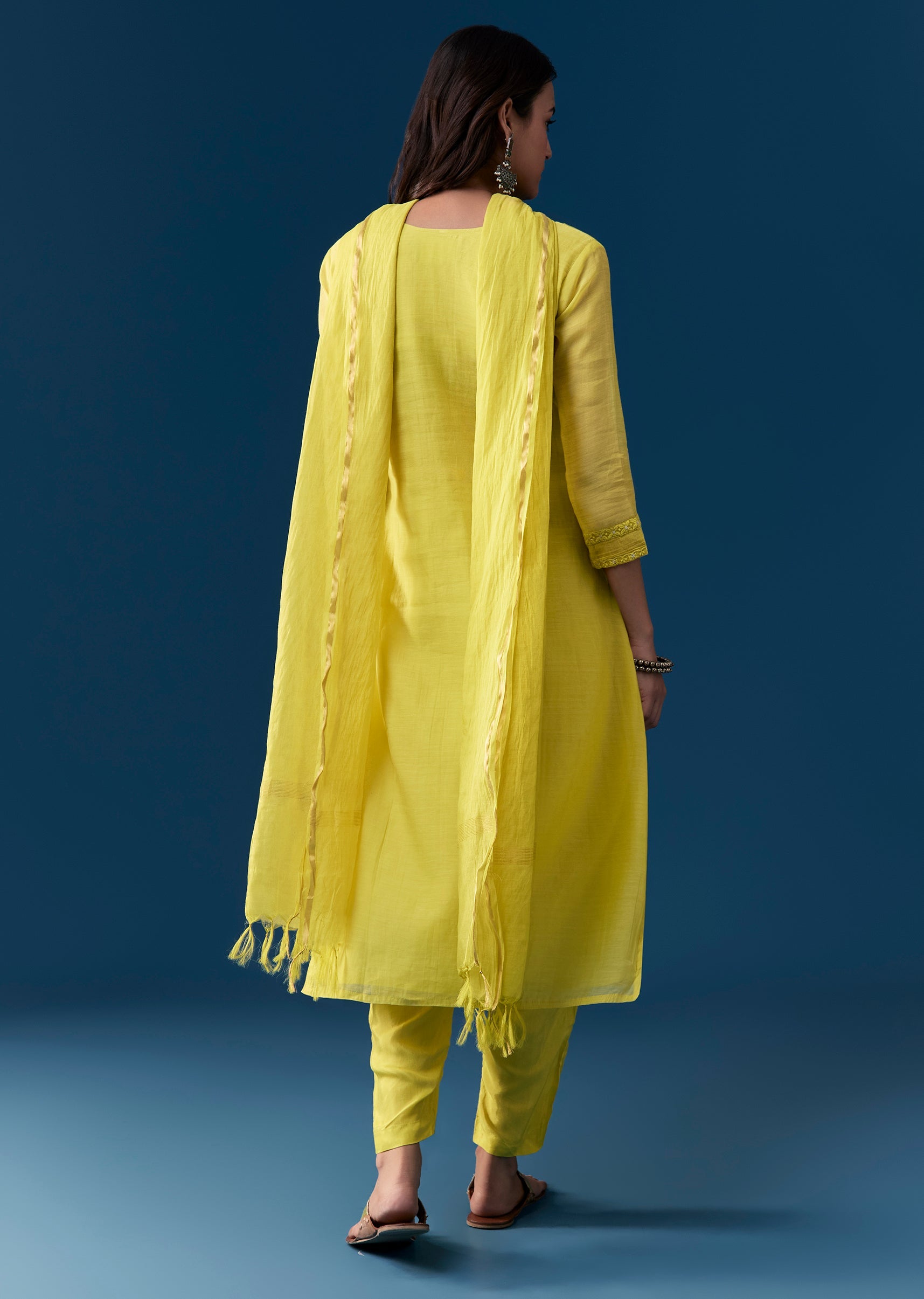 Add a vibrant touch to your festive wardrobe with this lime kurta set crafted in classic Pakistani style. Made from soft cotton fabric, the kurta features delicate thread embroidery along... More Product Details