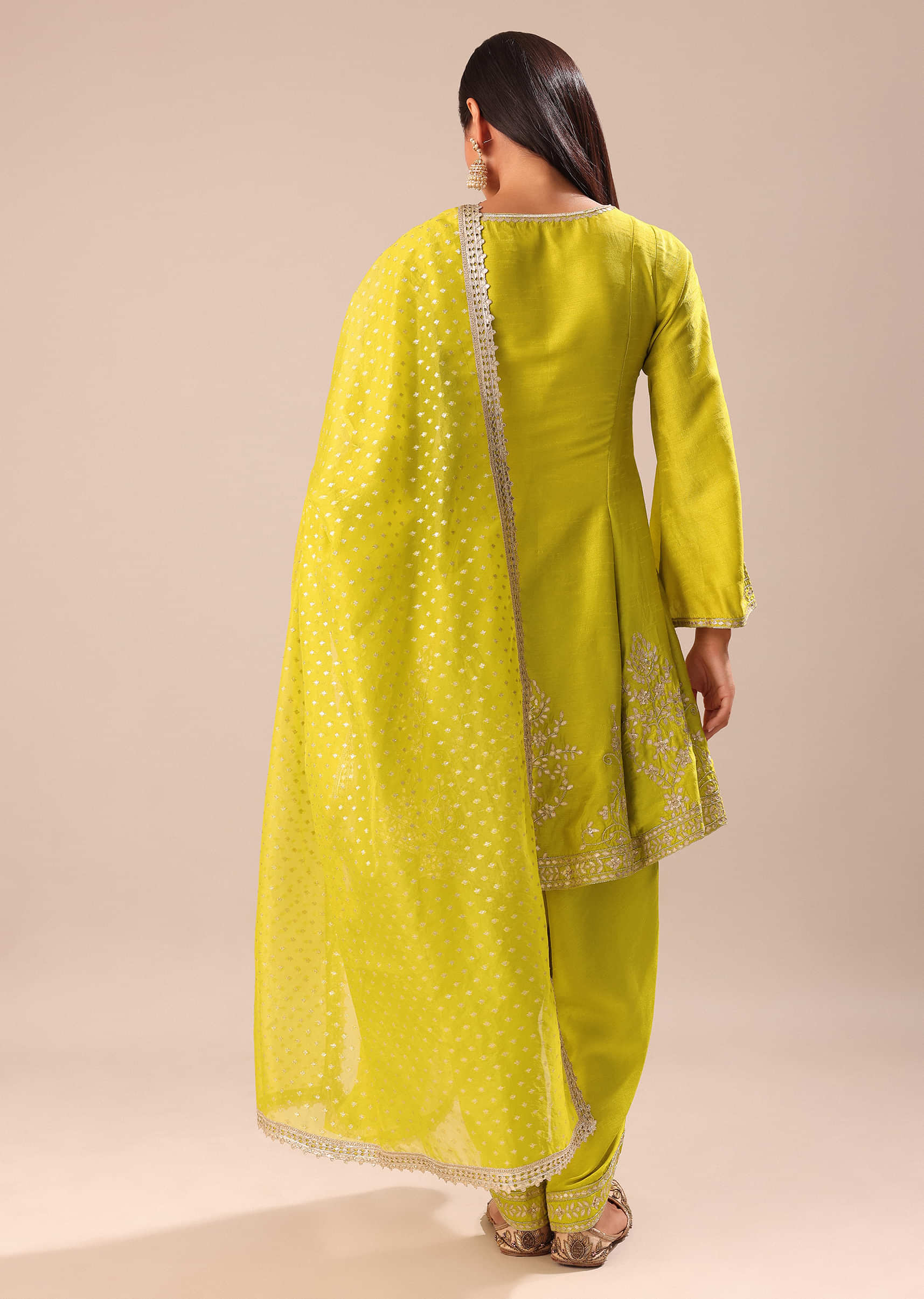 Lime Yellow Embroidered Kurta With Salwar And Dupatta