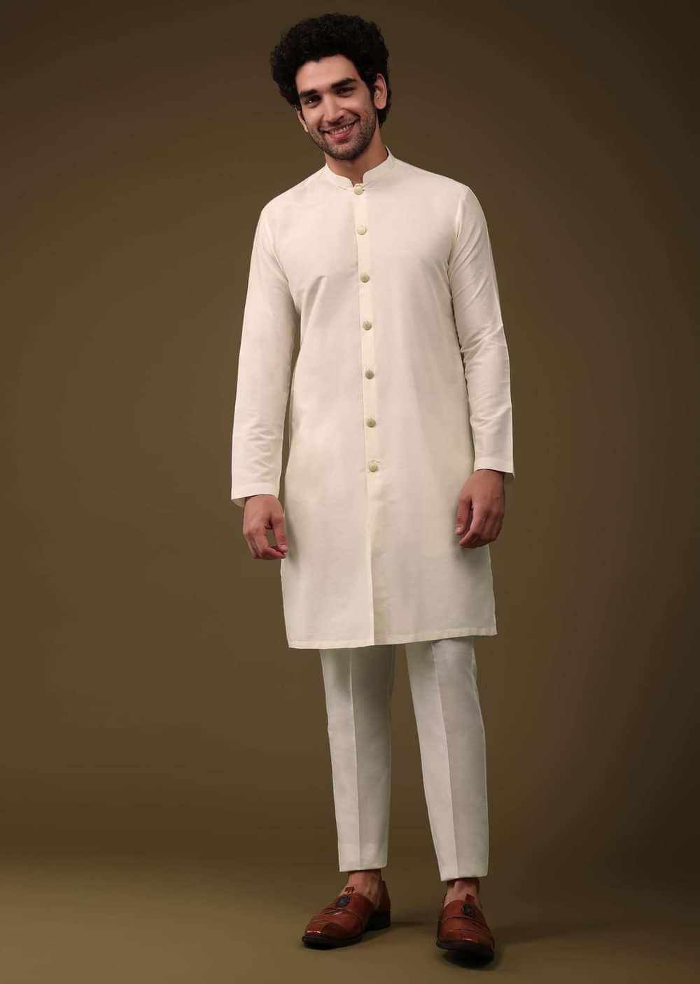 Fit Tips:The kurta comes with a front closure, the pants come with front button closure in a classic regular fit that complements different body types.