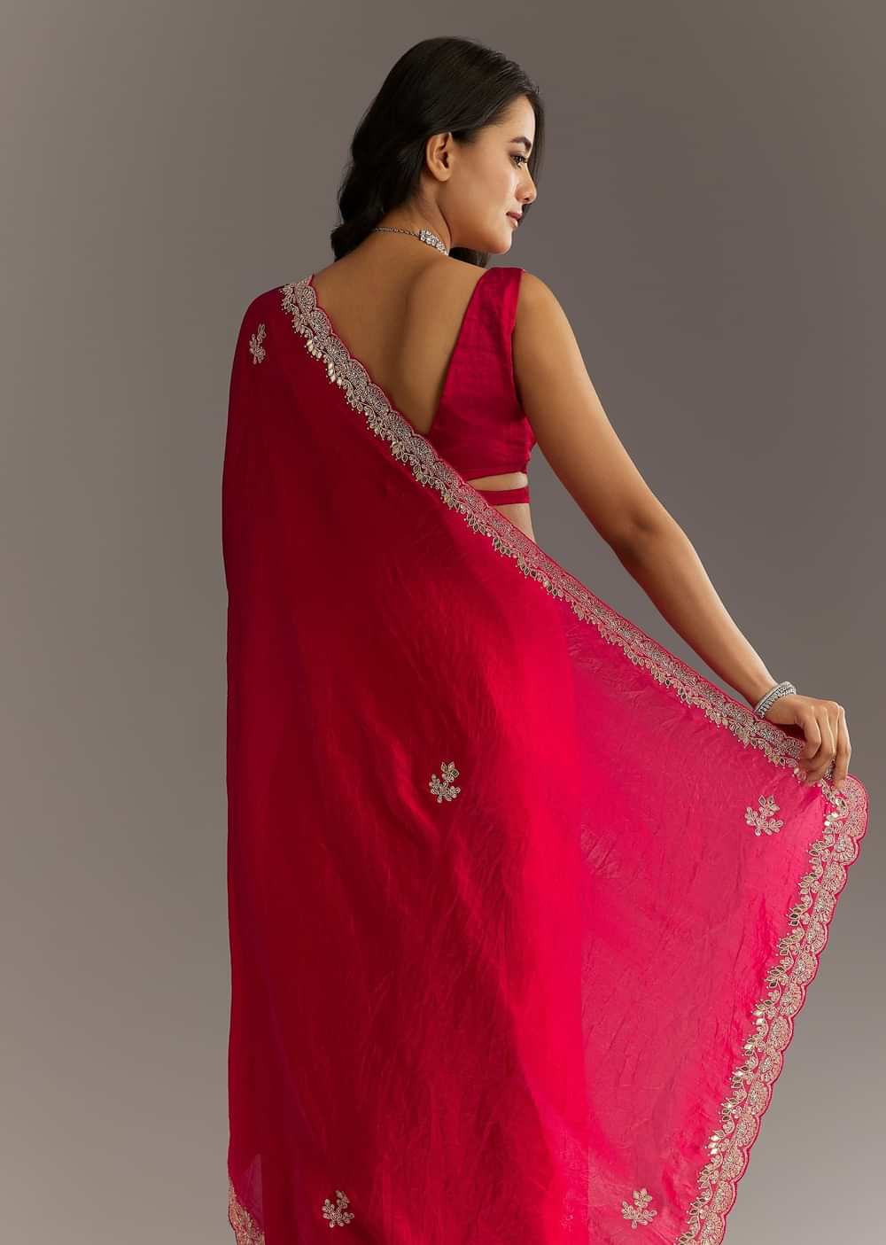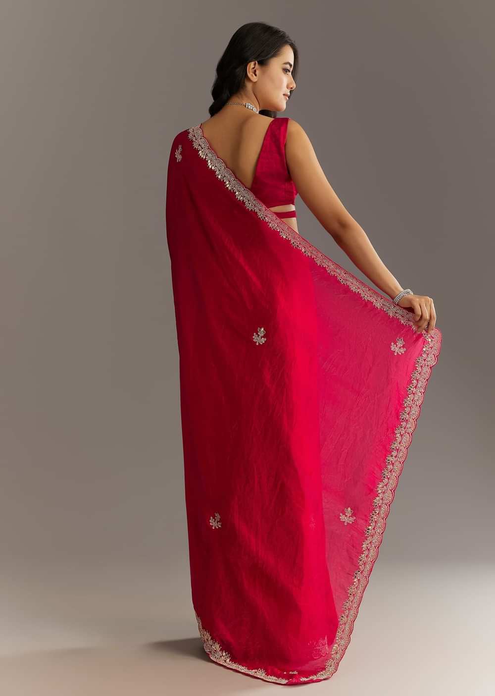 Magenta Gota Patti Embroidered Saree With Stones And Cutdana Work