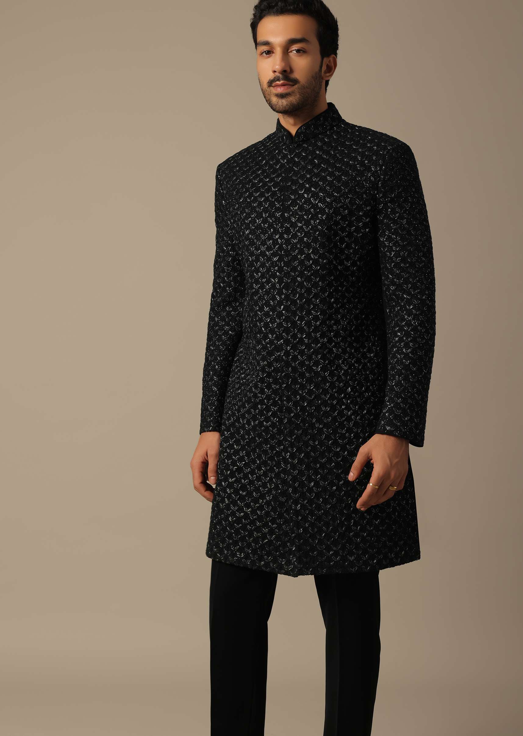 Immerse yourself in timeless elegance with our Majestic Black Lycra Sherwani. Distinguished by intricate cut dana work, this ensemble caters to the groom's desire for opulence. The full-sleeved Sherwani, paired with a complementary bottom, exudes sophistication. It is the perfect choice for grooms looking to shine. Awarded as the Most Trusted Brand, we're delivering styles you love, just as promised.