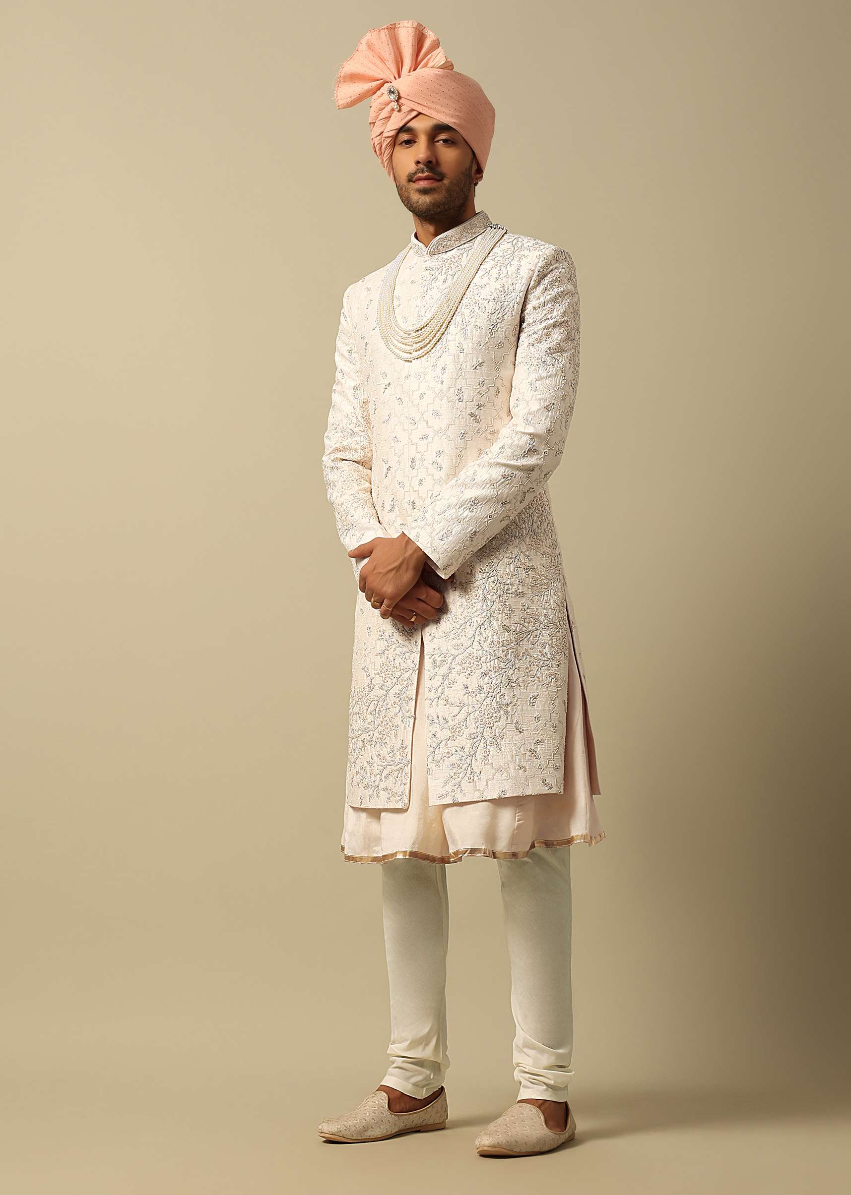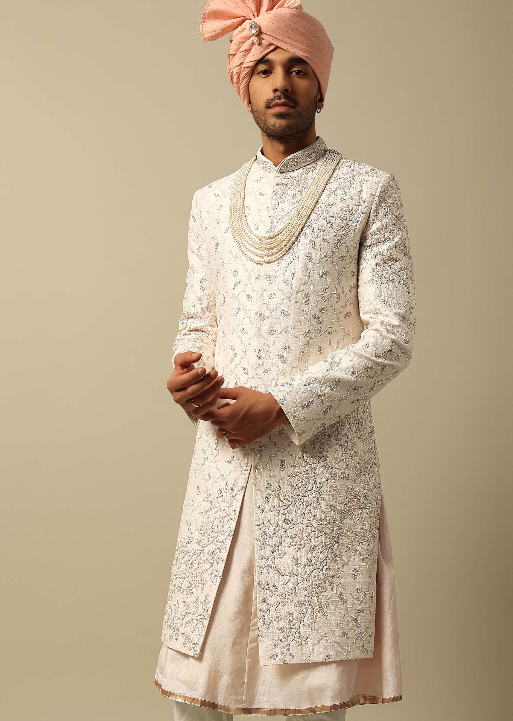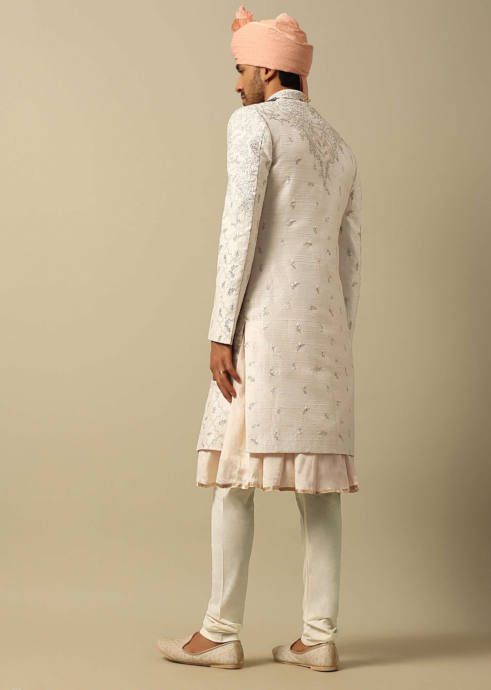 Style Tips: Pair this sherwani with statement accessories such as a contrasting turban or embroidered stole.