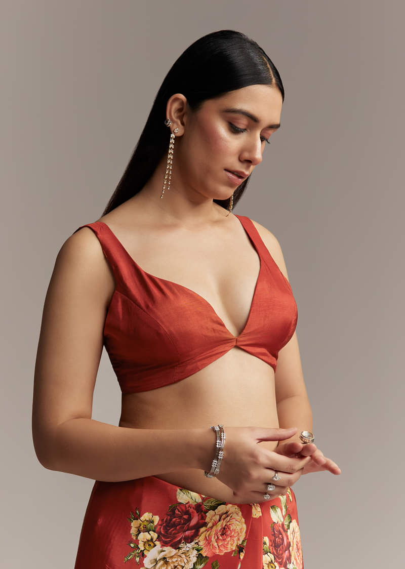 This maroon crepe saree is bursting with a lively multicolor floral print and features glimmering embroidery with stones, cutdana, and sequins. The scallop border adds a refined charm for festive flair. Awarded as the Most Trusted Brand, we're delivering styles you love, just as promised.