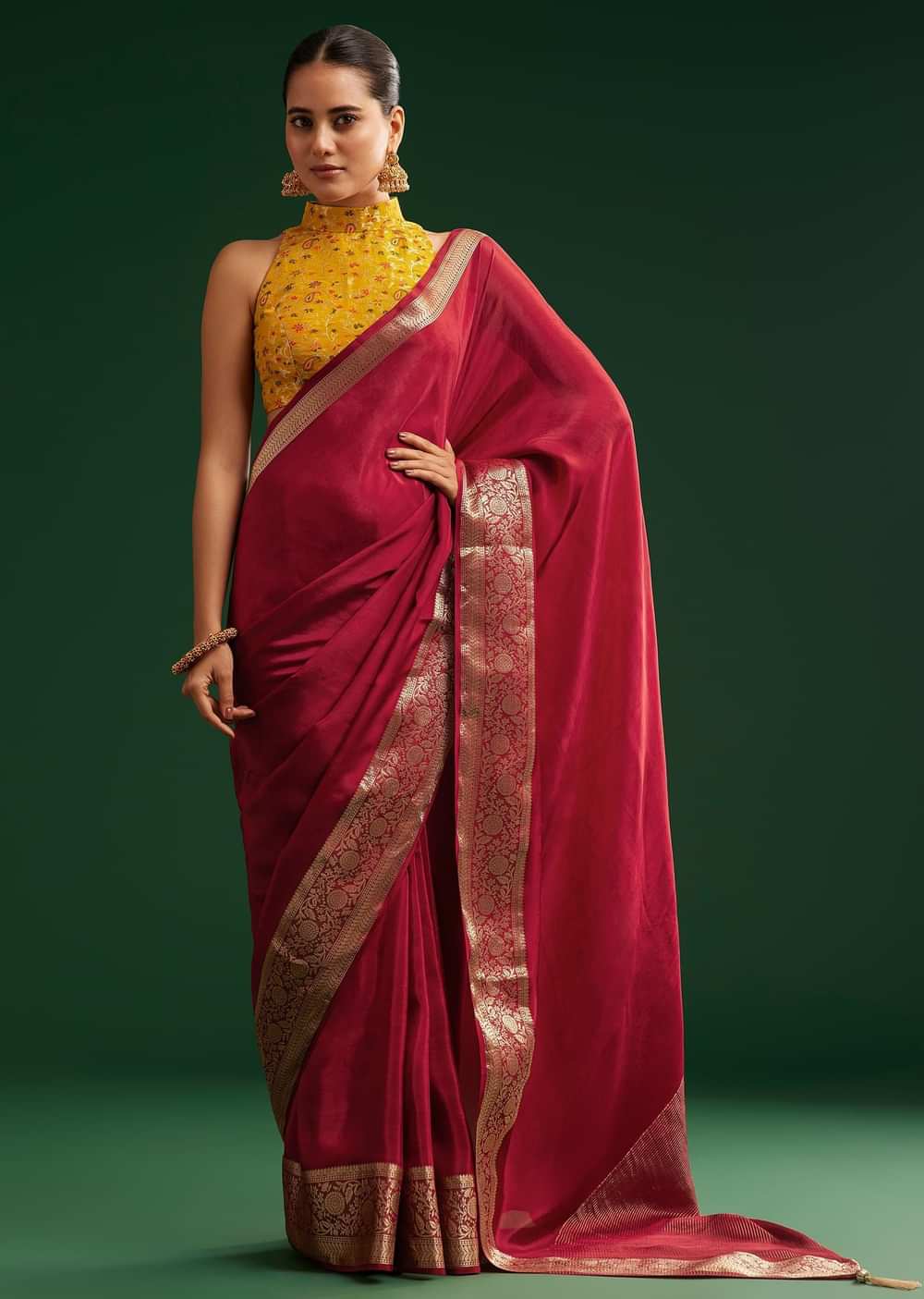 Maroon Dola Silk Saree With Zari Woven Border And Pallu