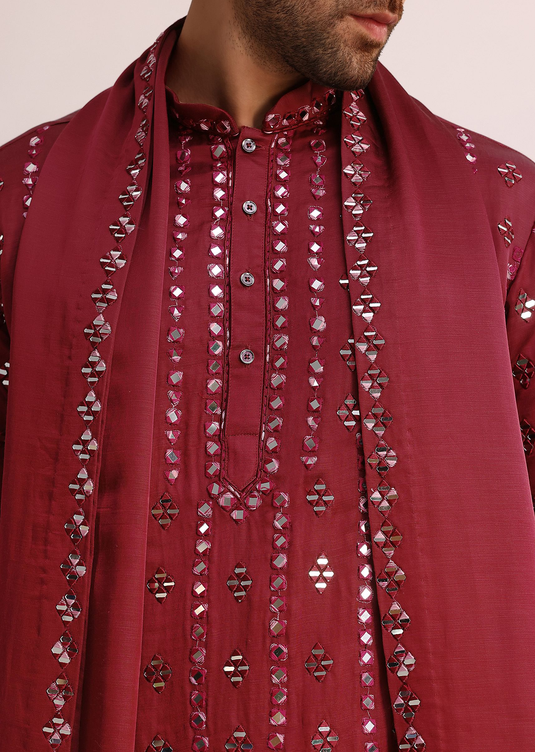 Maroon Silk Blend Mirror Work Kurta Set With Dupatta