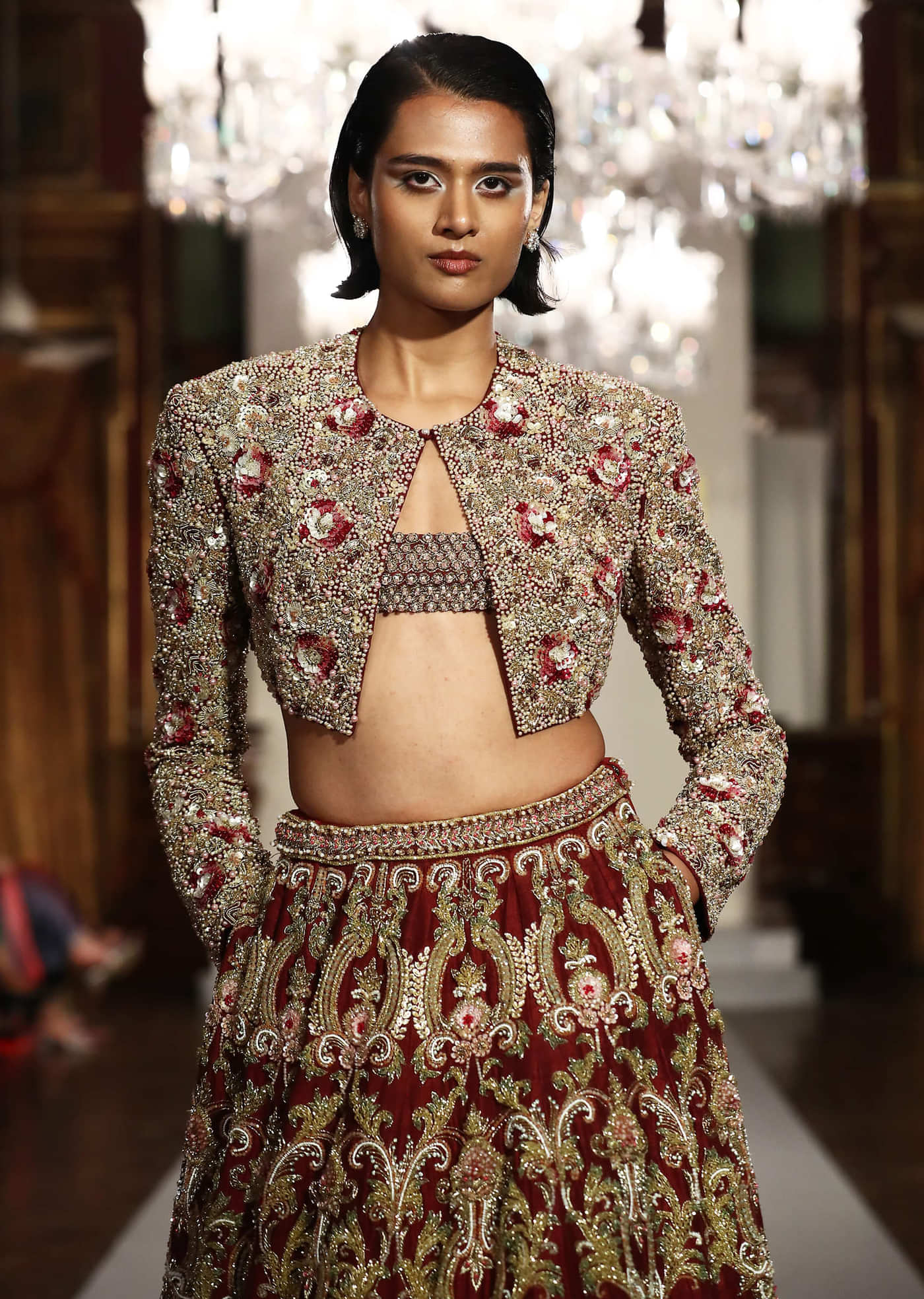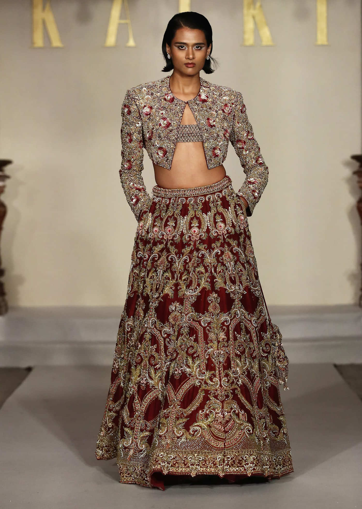 Pair with layered polki jewellery and a bold red lip for a look that feels rooted in tradition yet strikingly modern.