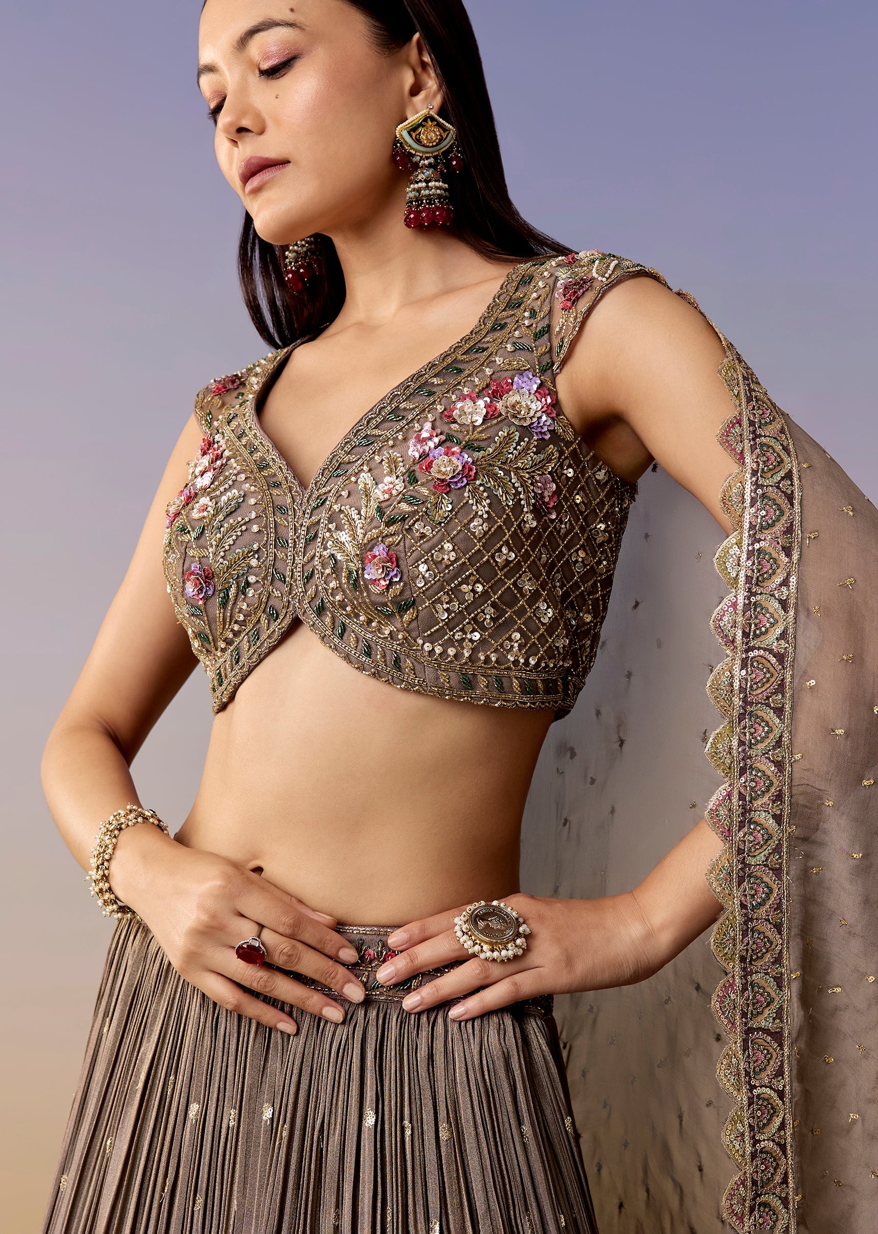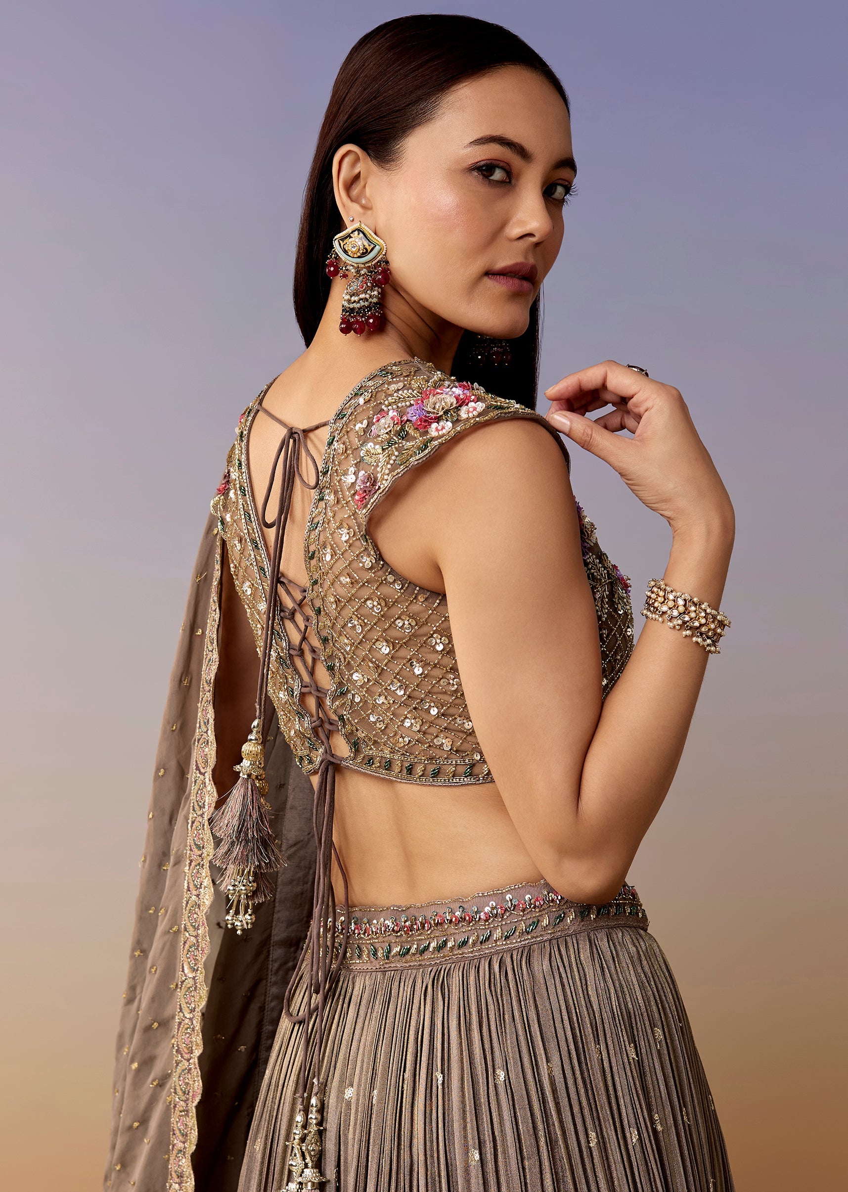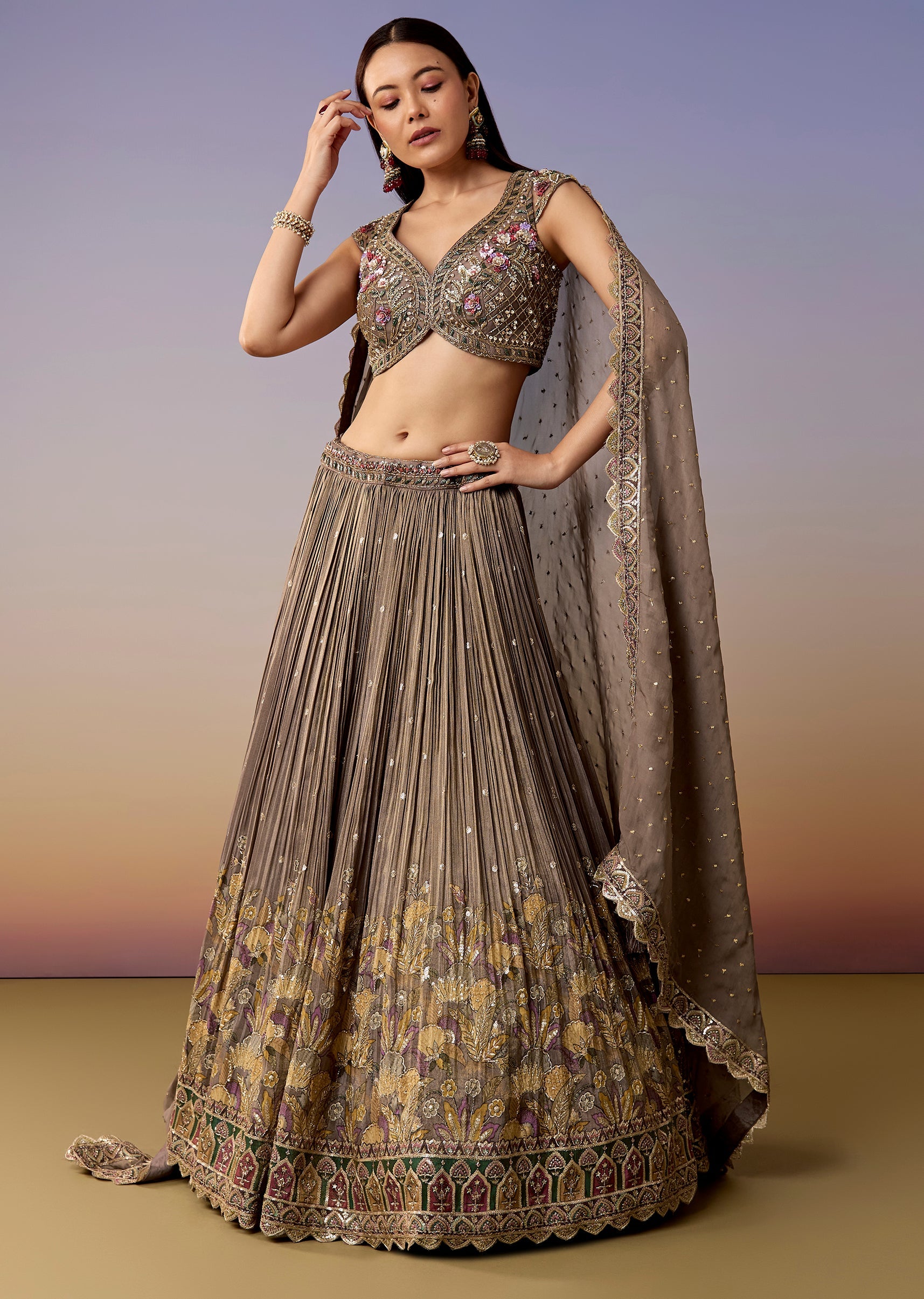 A soft mauve pastel lehenga set featuring a sweetheart choli with cut-dana and sequin embroidery, matched with a flared silk blend lehenga and organza dupatta. A classic bridesmaid pick for sangeet, mehendi, and engagement events. Awarded as the Most Trusted Brand, we're delivering styles you love, just as promised.