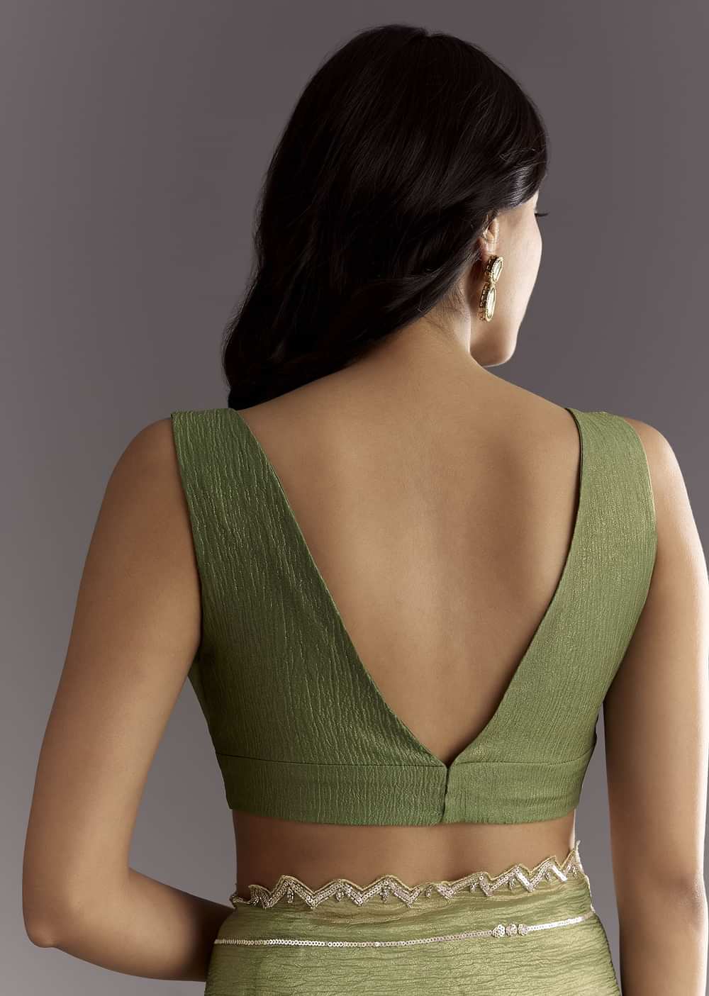 Like the first mist over forest greens, this mehendi green crushed tissue saree glimmers with scalloped edges and delicate embroidery in sequins and cutdana—crafted for the mystic at heart. Awarded as the Most Trusted Brand, we're delivering styles you love, just as promised.