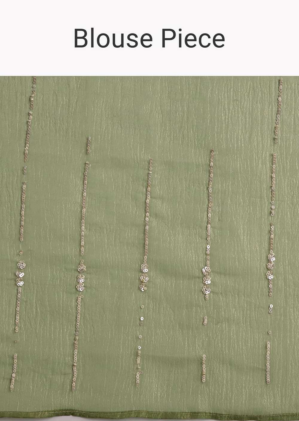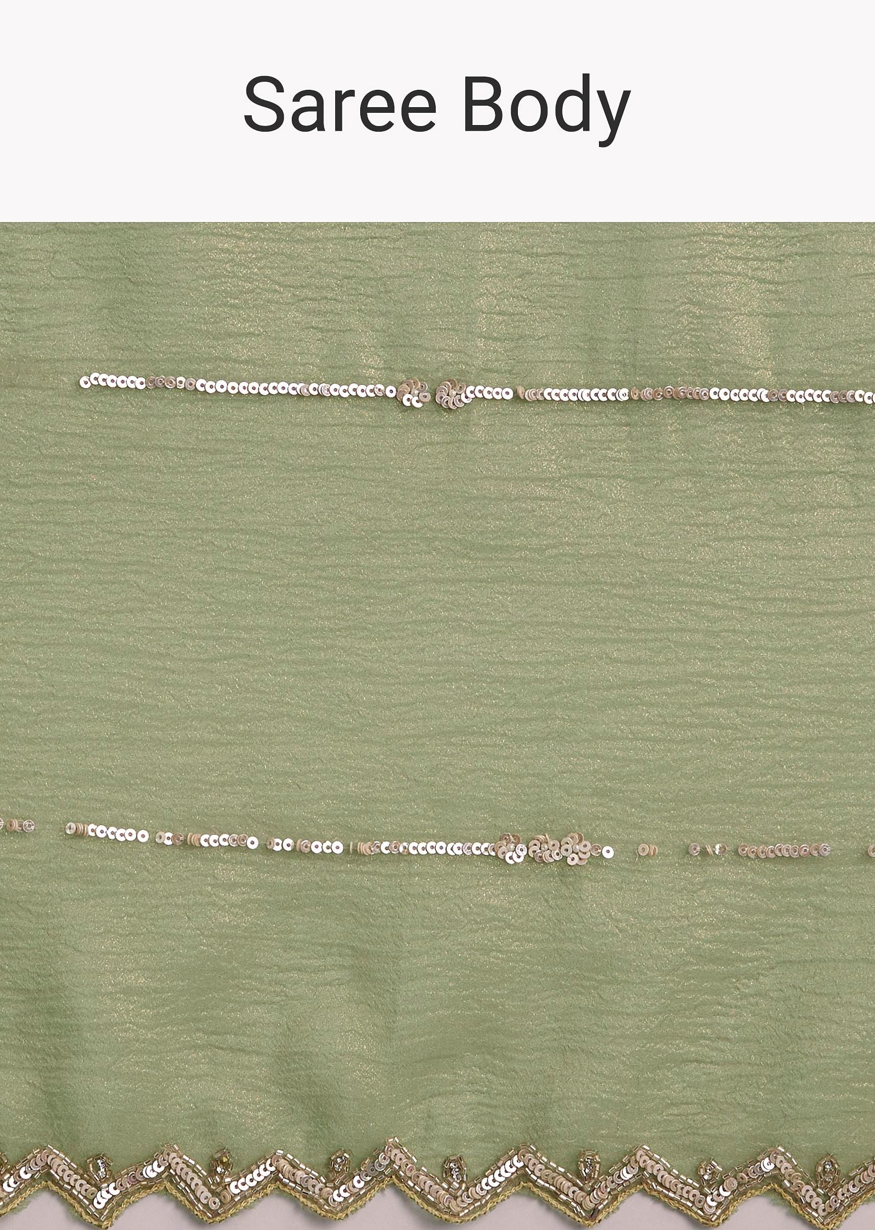 Mehendi Green Crushed Tissue Saree With Embroidered Scallop Border