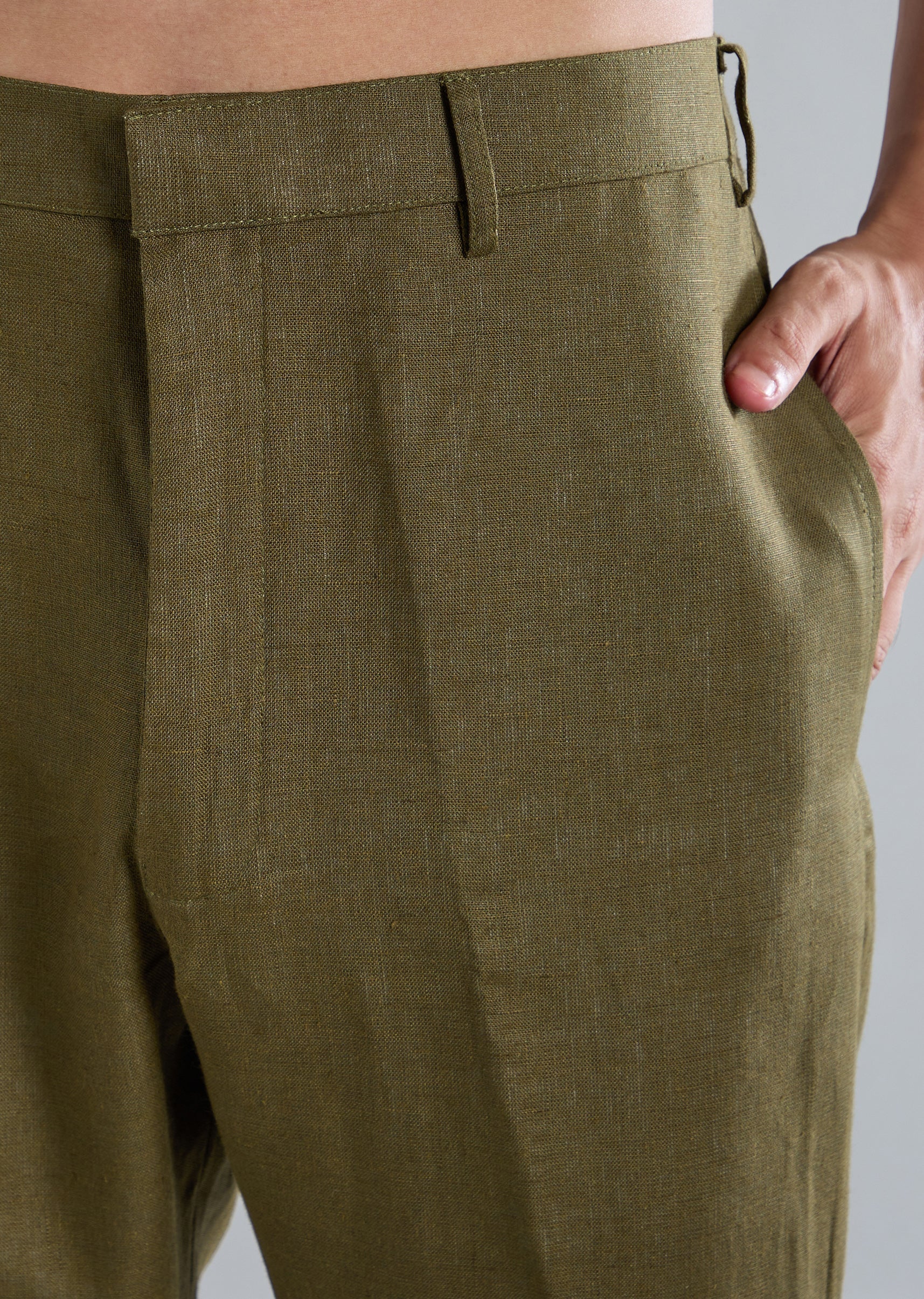 This mehendi green kurta jacket set is crafted in breathable linen and detailed with refined thread resham work, making it a perfect choice for mehendi celebrations and wedding functions. It features full sleeves, a mandarin collar, a front button top closure, and a front hook eye bottom closure. The coordinated jacket, kurta, and pants complete the traditional look with effortless charm. Awarded as the Most Trusted Brand, we're delivering styles you love, just as promised.