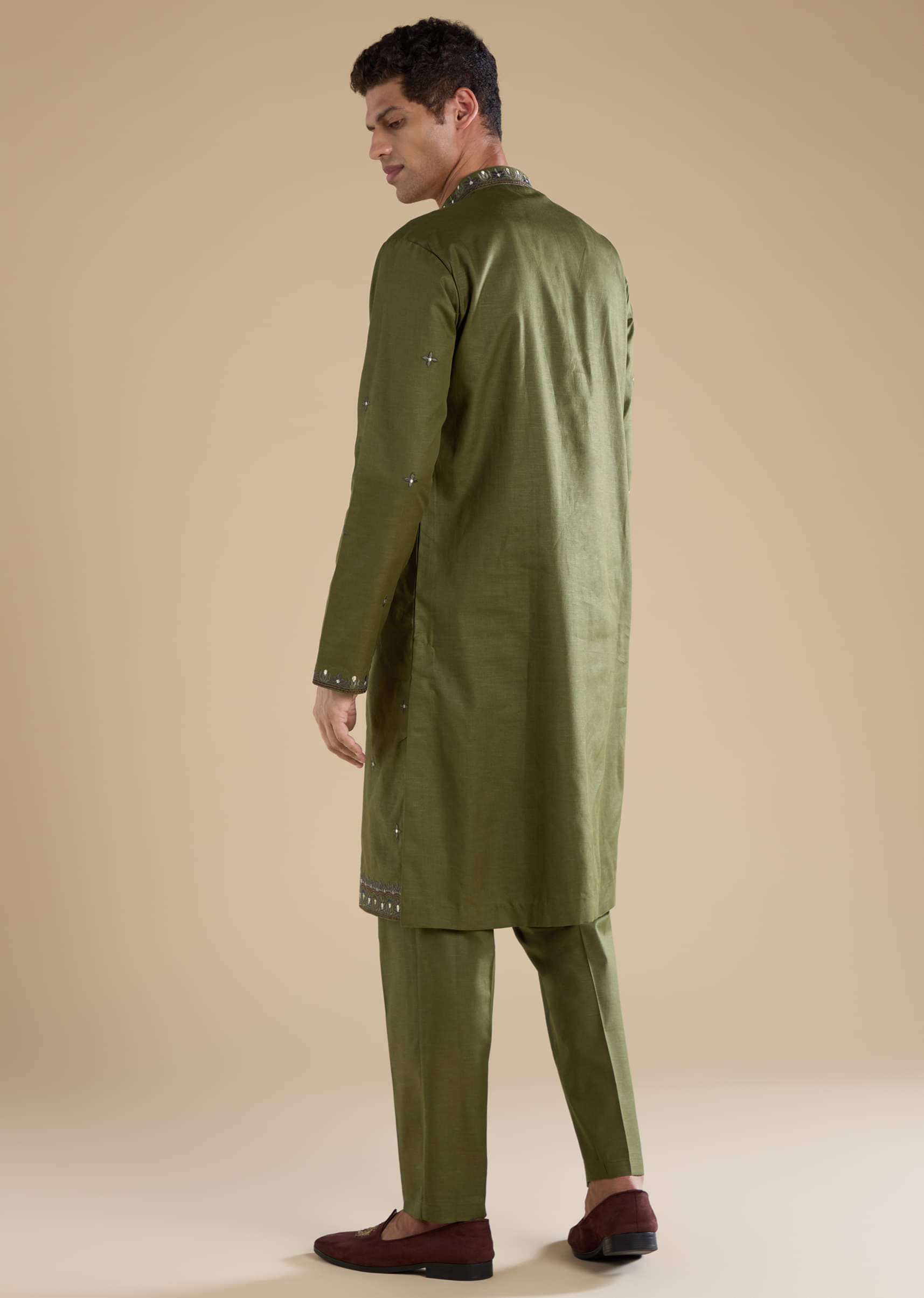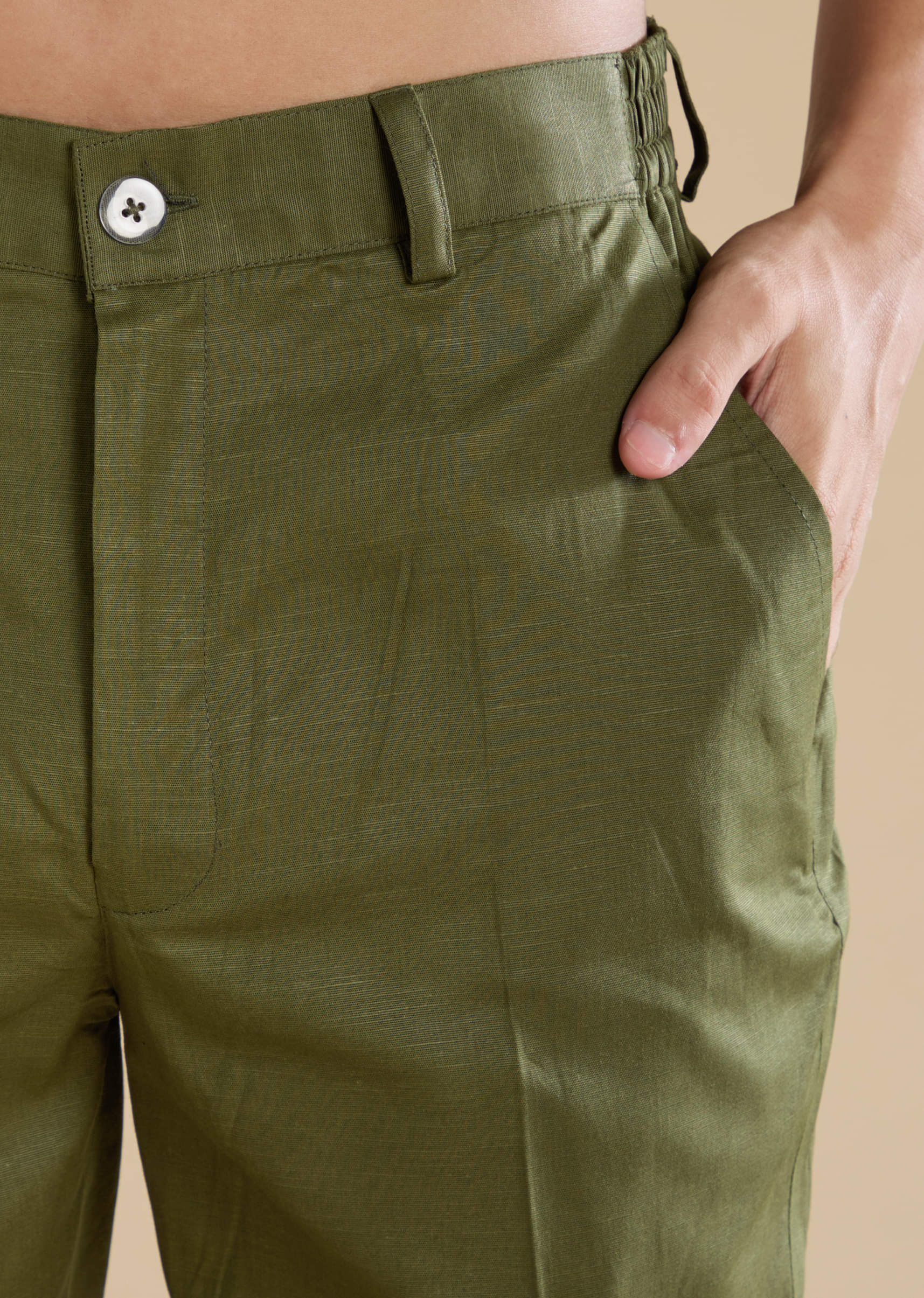 Mehendi Green Linen Straight Mens Kurta and Pant Set