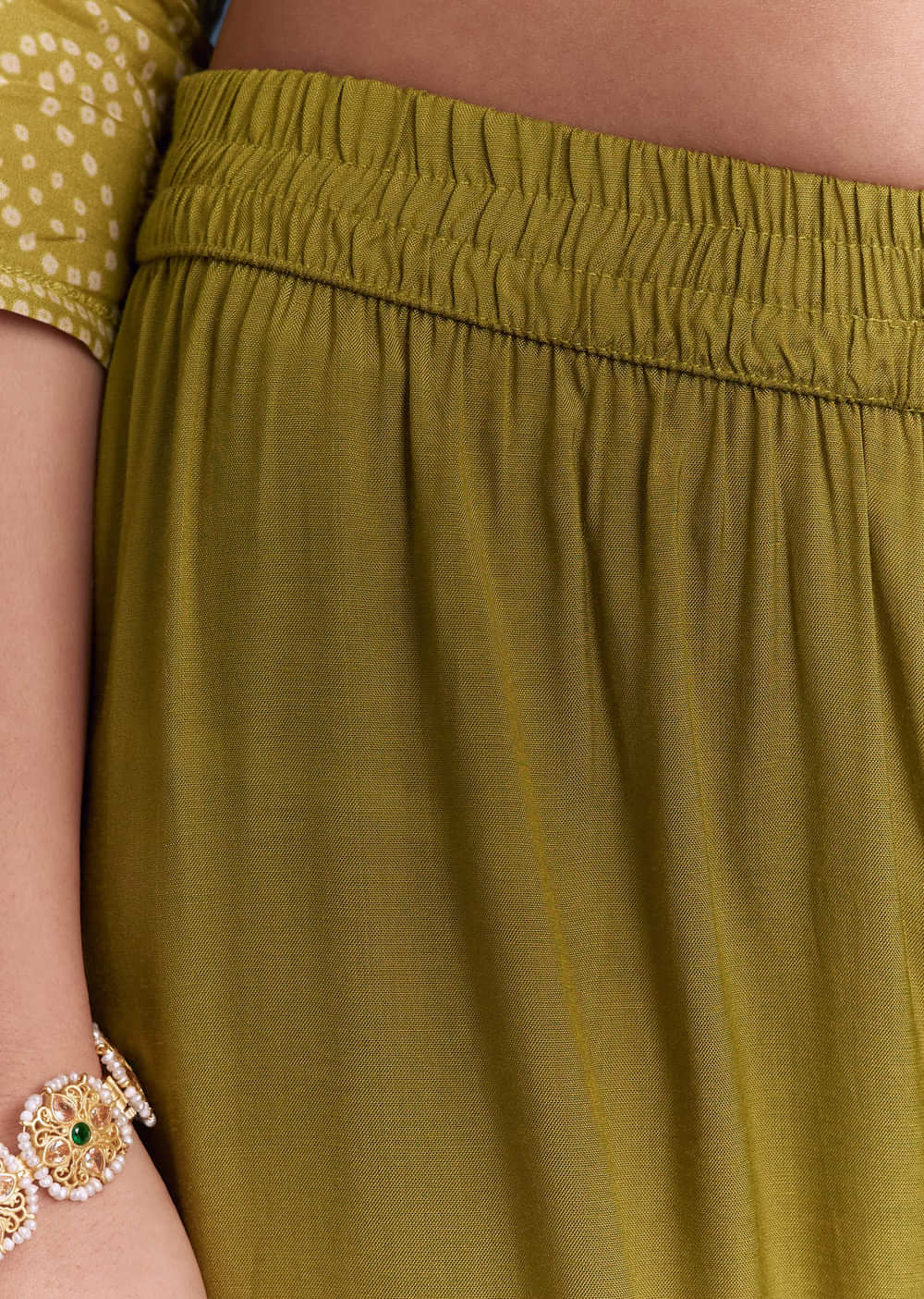 The kurta should feel light and unrestrictive, while the trousers sit mid-waist with a straight leg that moves easily.