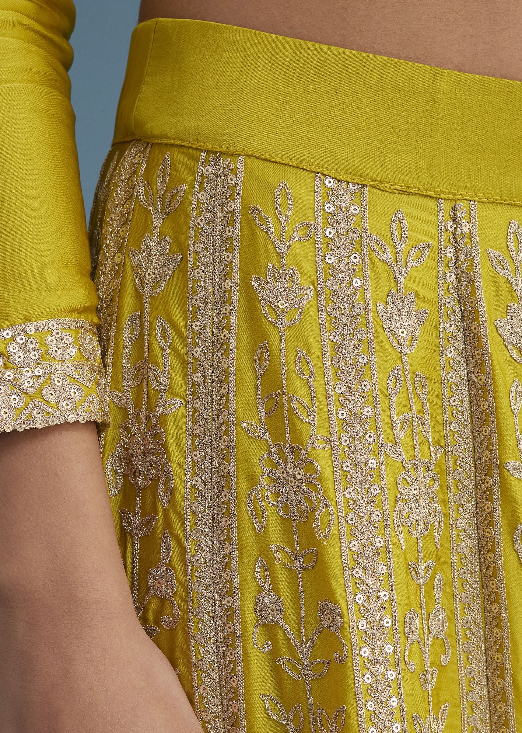 This elegant mehendi green silk palazzo set is beautifully adorned with intricate zari and sequin work, offering a perfect balance of tradition and modern style. The kurta is delicately embroidered,... More Product Details