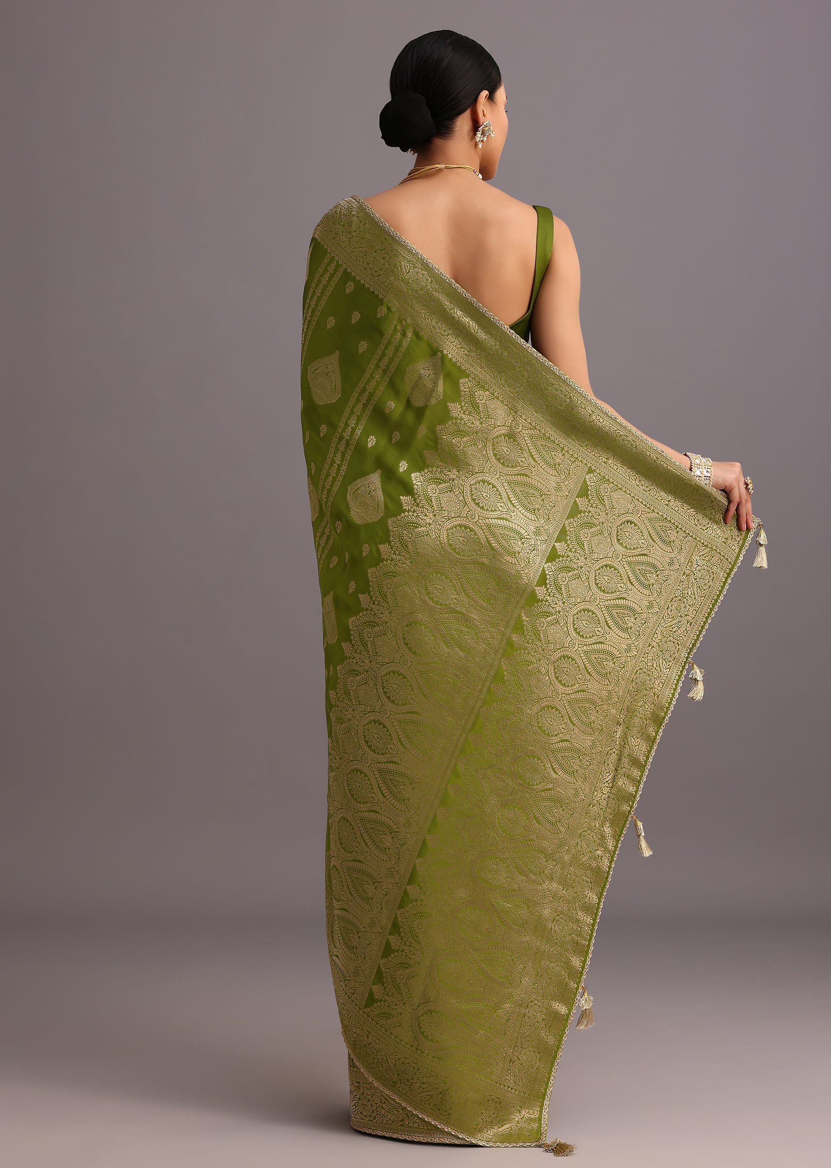 Mehendi Green Zari Woven Satin Silk Saree And Brocade Border