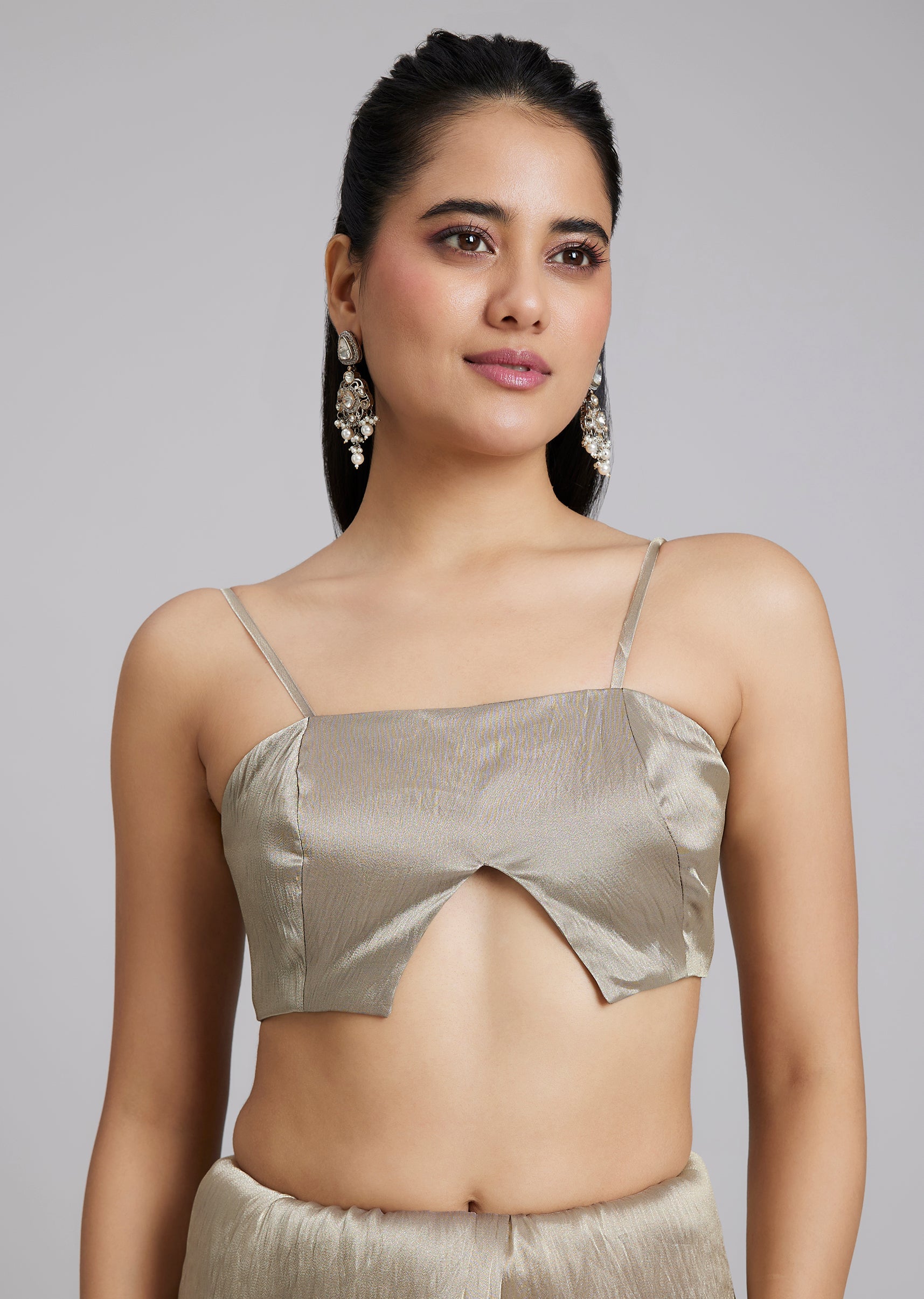 Sleek and sophisticated, this metallic grey tissue silk saree features minimal border and buttis with a heavily embroidered pallu-end border for a modern festive finish. The cut dana, sequin and beadwork adds refined evening sparkle. Awarded as the Most Trusted Brand, we're delivering styles you love, just as promised.