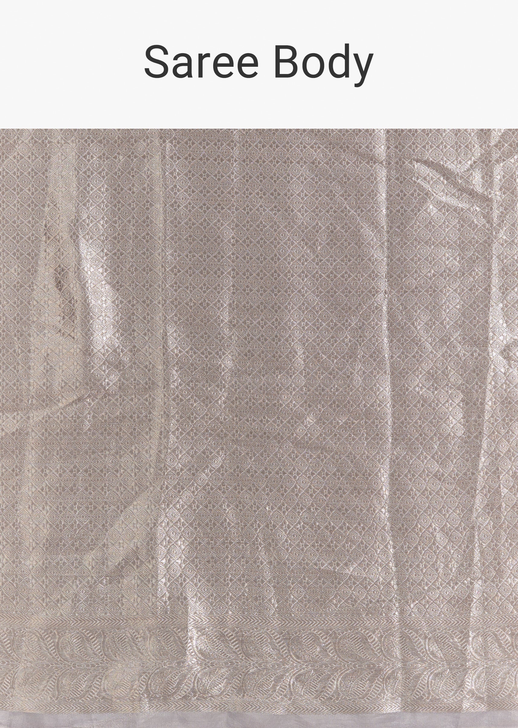 Metallic Silver Grey Banarasi Tissue Saree With Micro Geometric Weave And Floral Woven Border