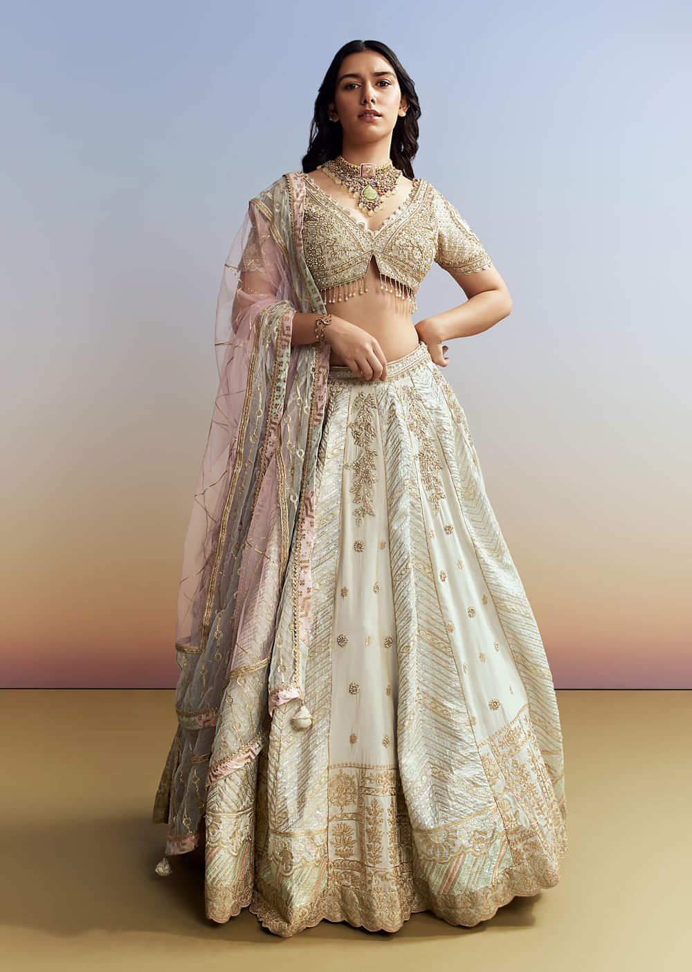Mint Blue Tissue Embroidered Bridesmaid Lehenga