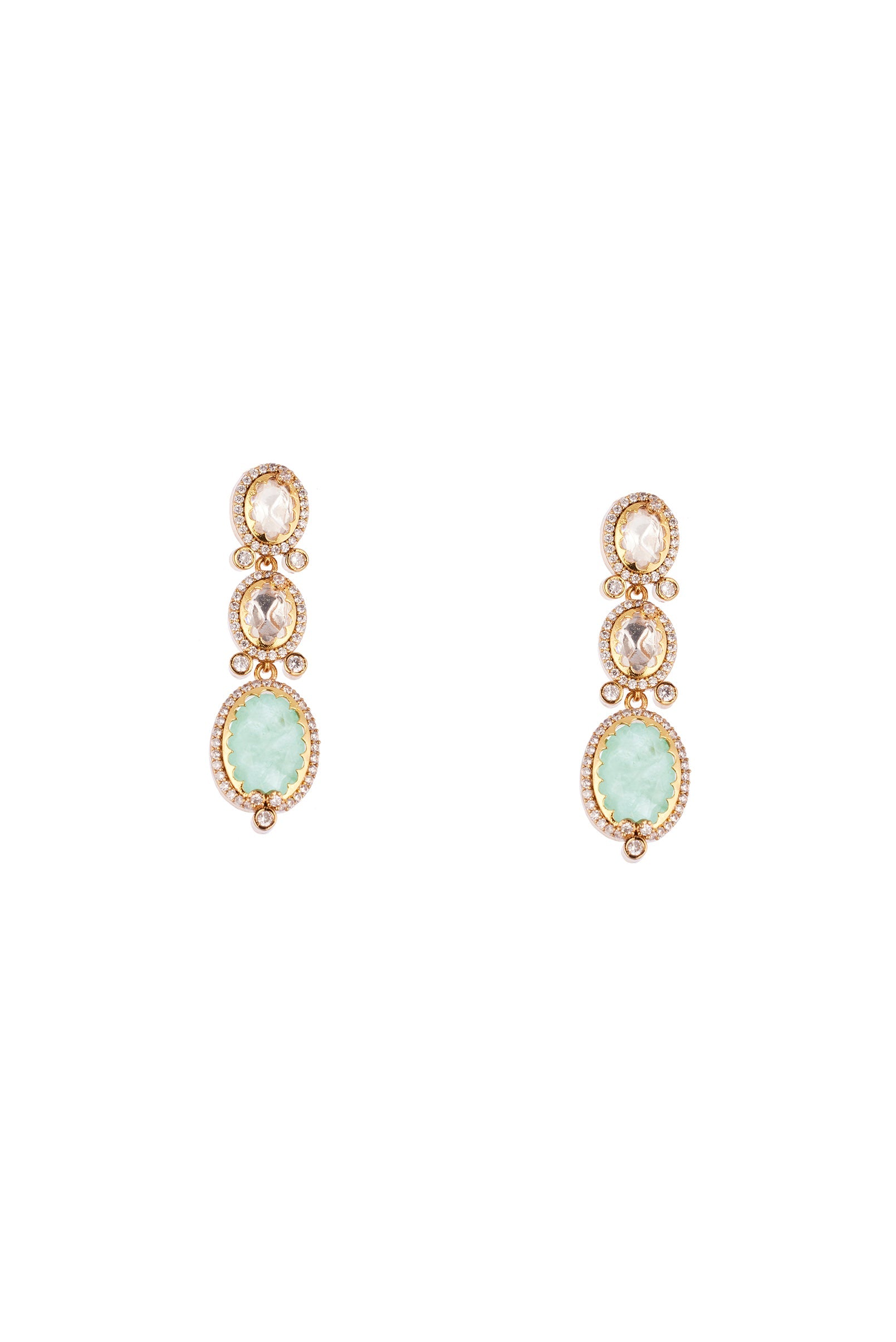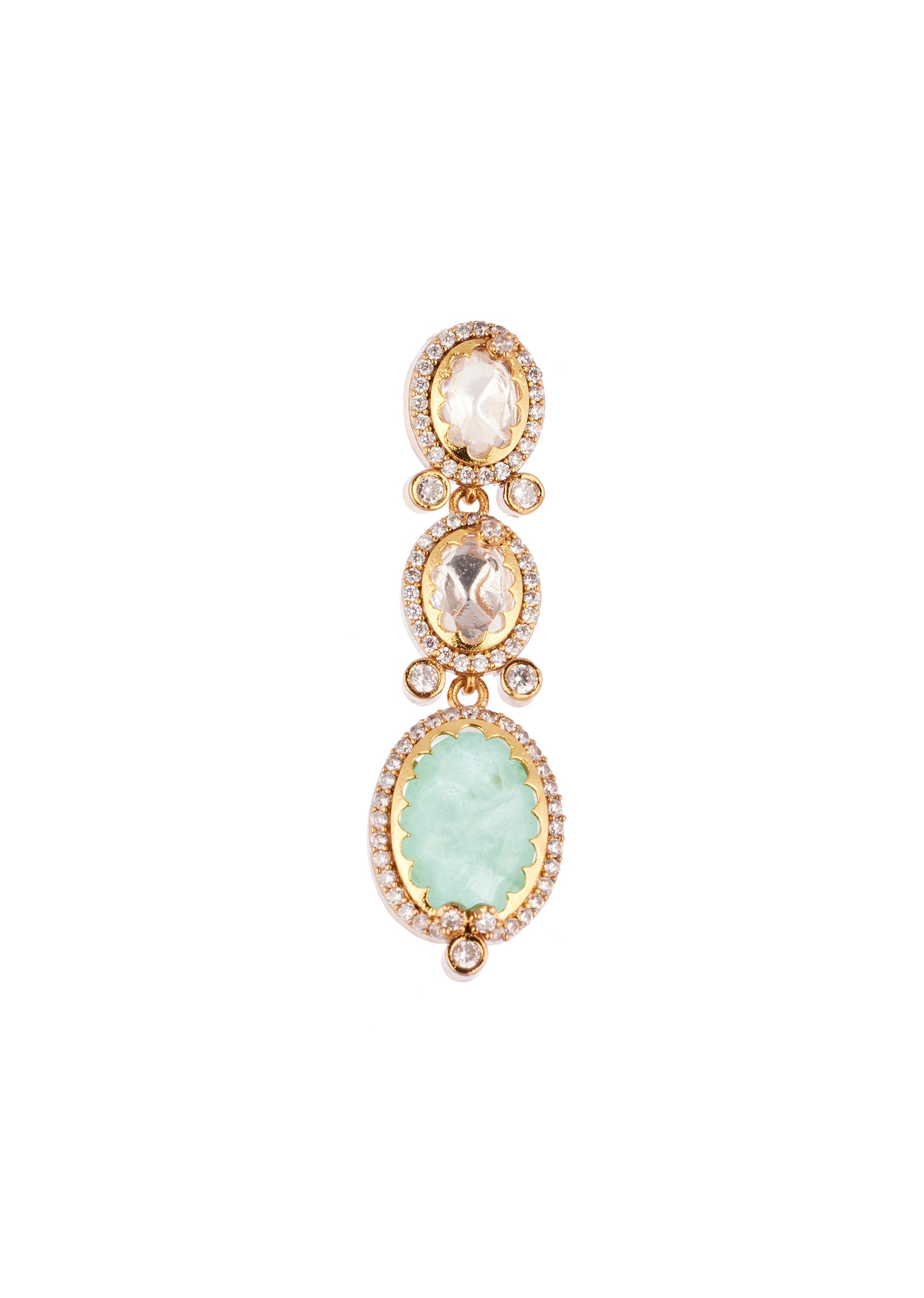 Mint Green and Gold Finish Jewellery Set In Kundan Polki
