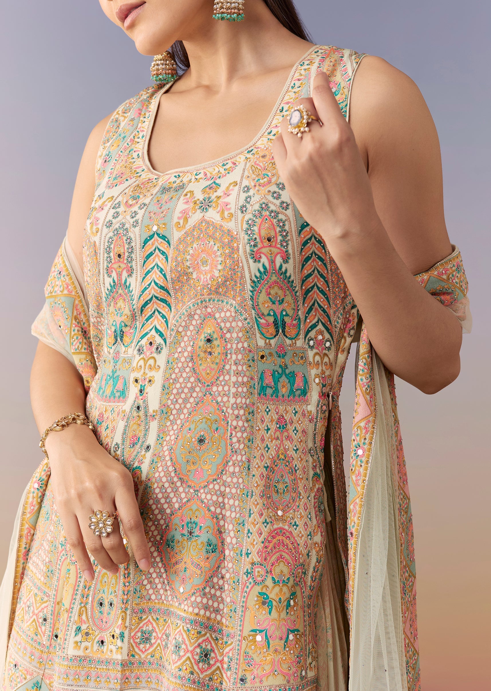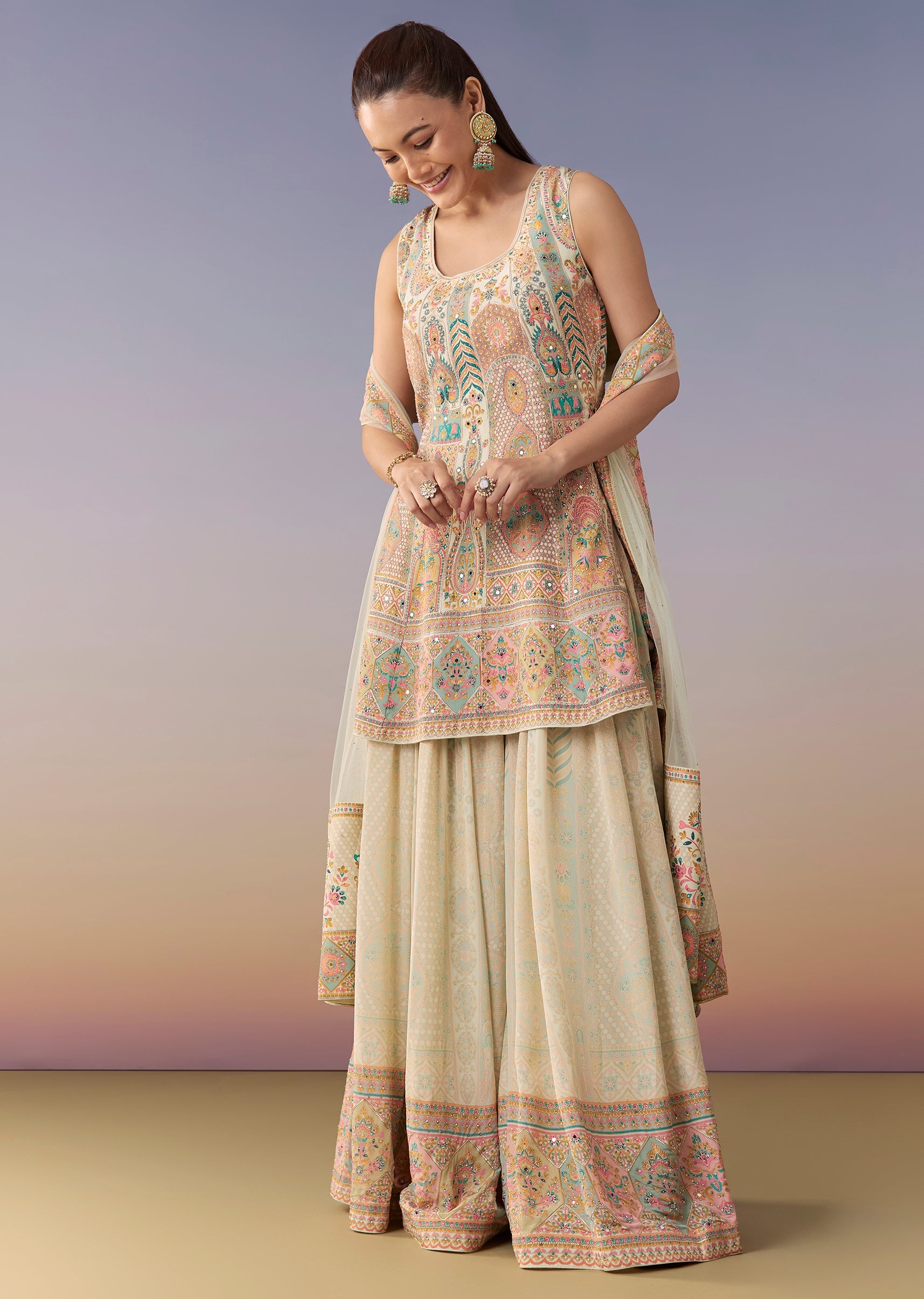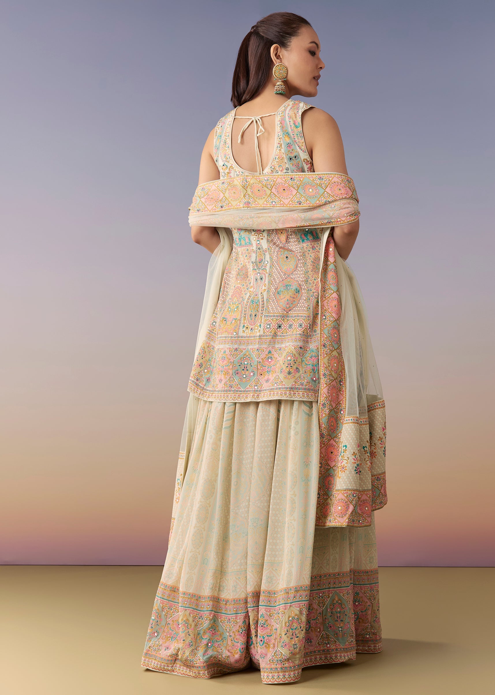 Mint Green Floral Embellished Palazzo Set With Dupatta