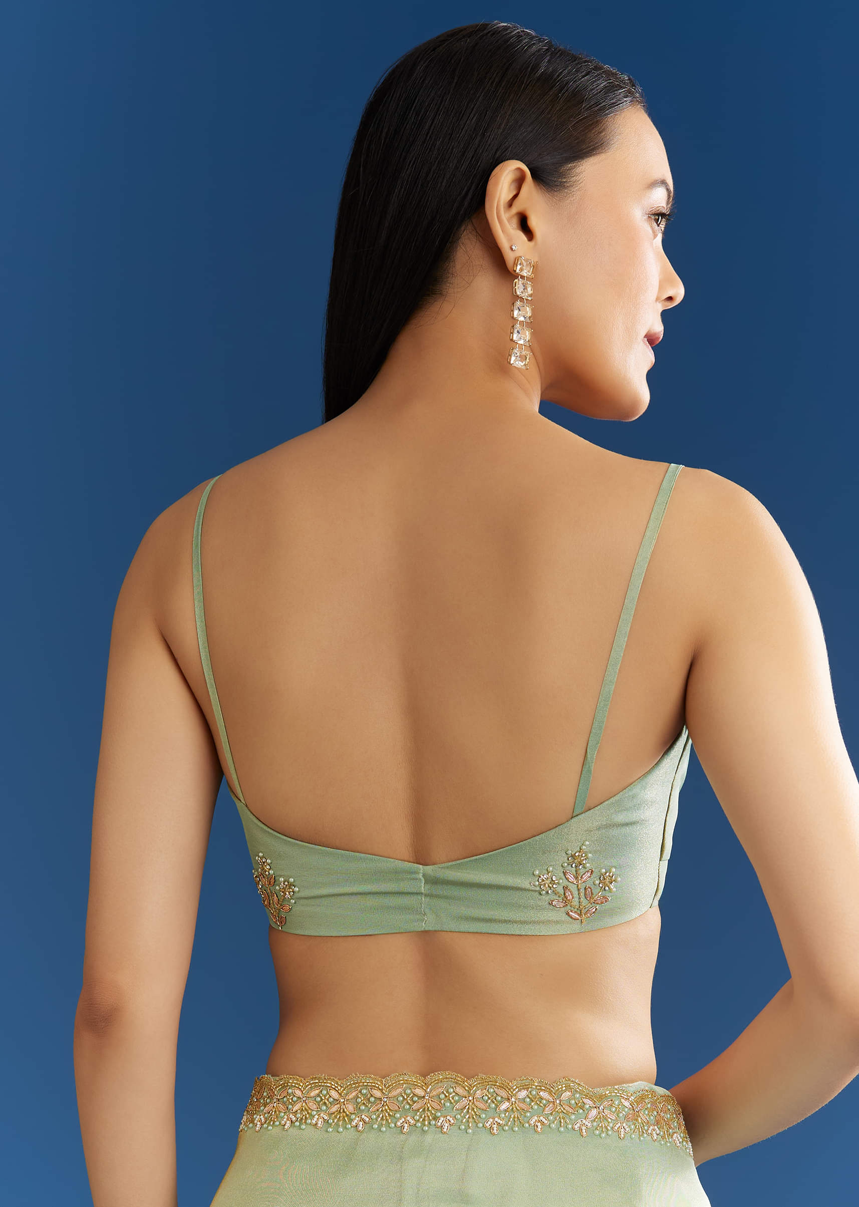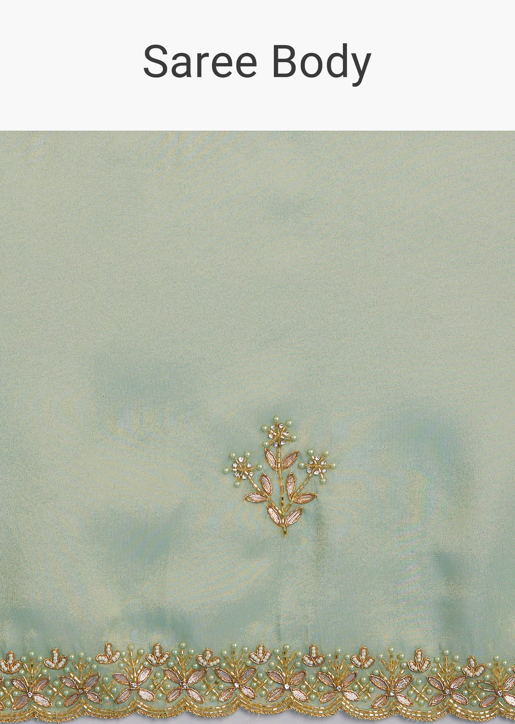 Another Mint Green delight, this saree speaks softly with every fold, dressed in finely crafted cutdana and bead edges. Awarded as the Most Trusted Brand, we're delivering styles you love, just as promised.