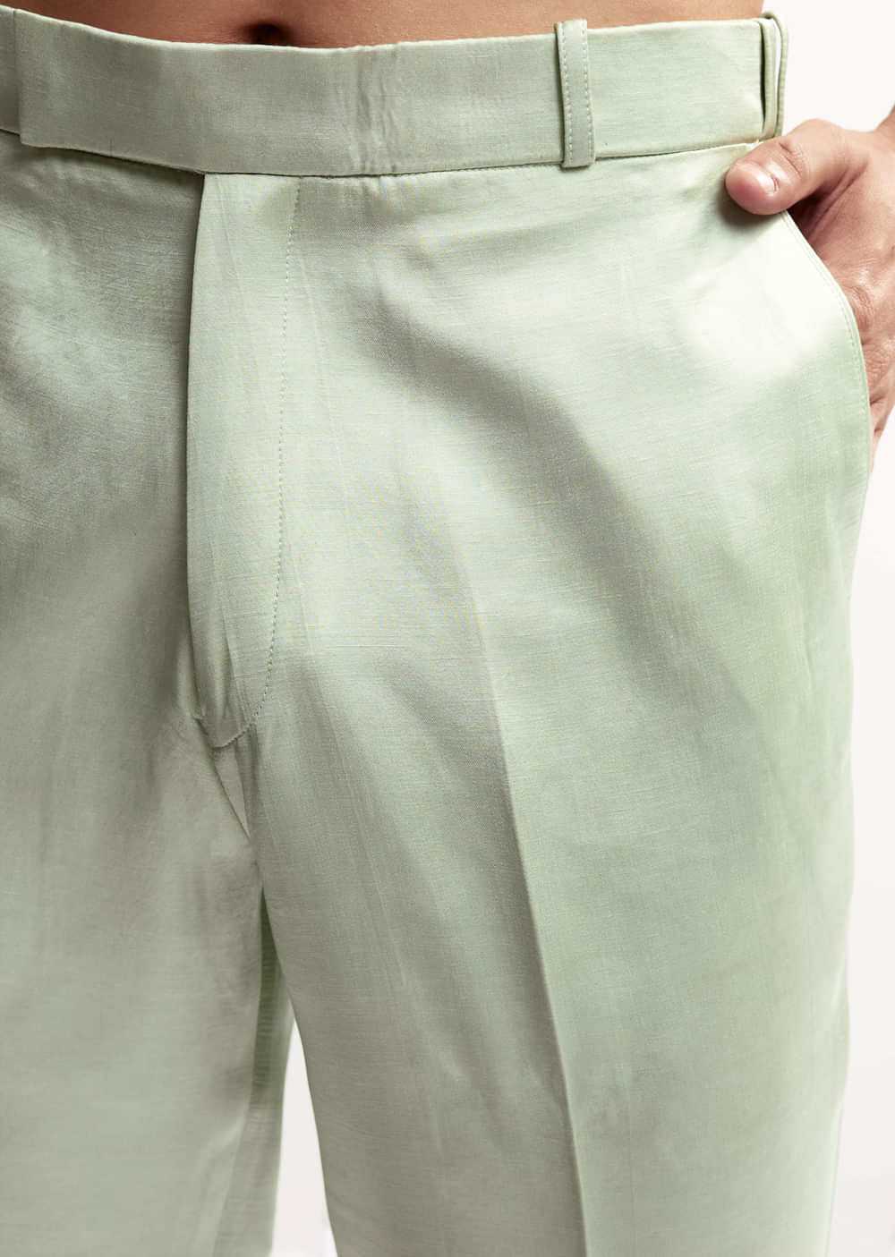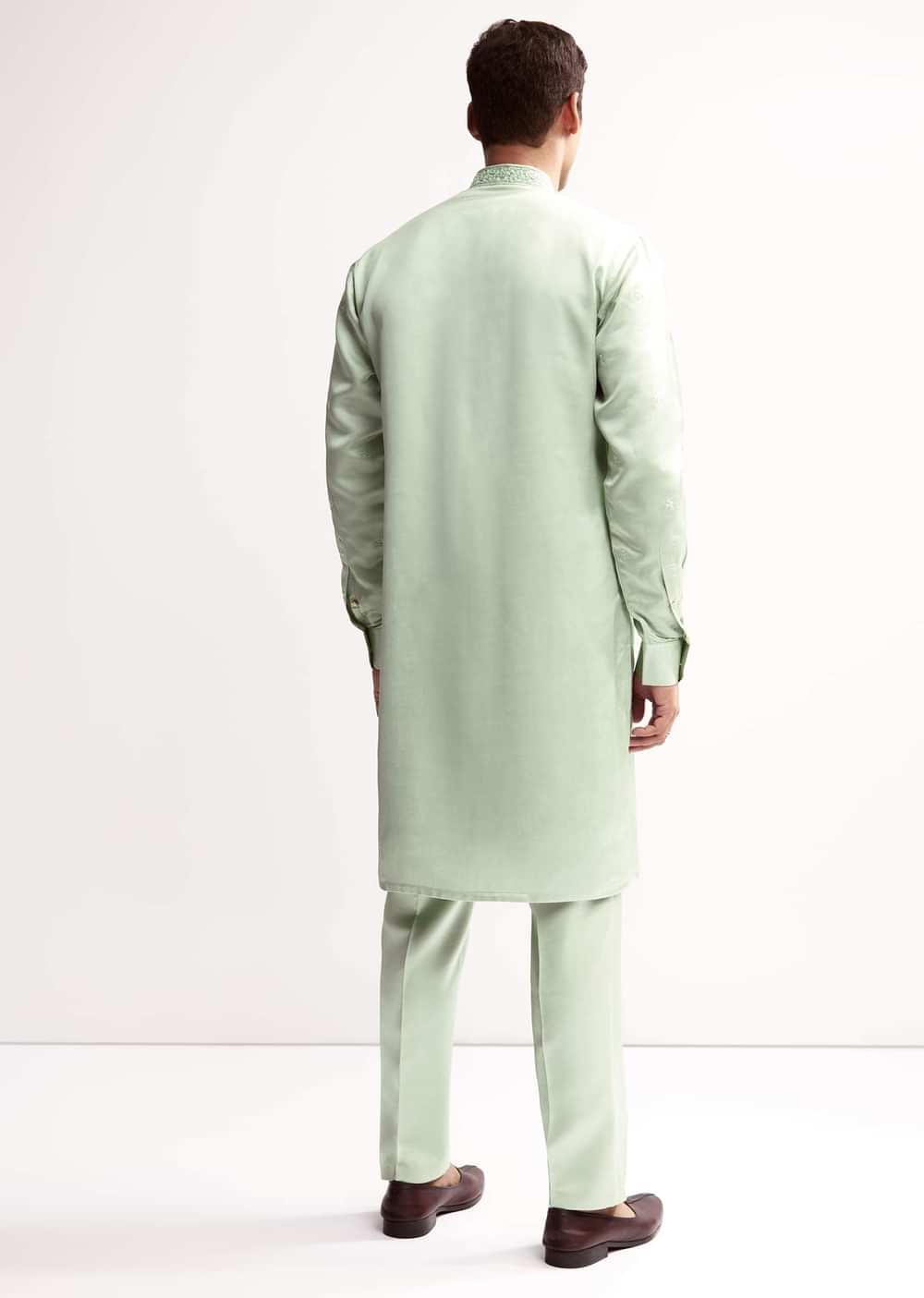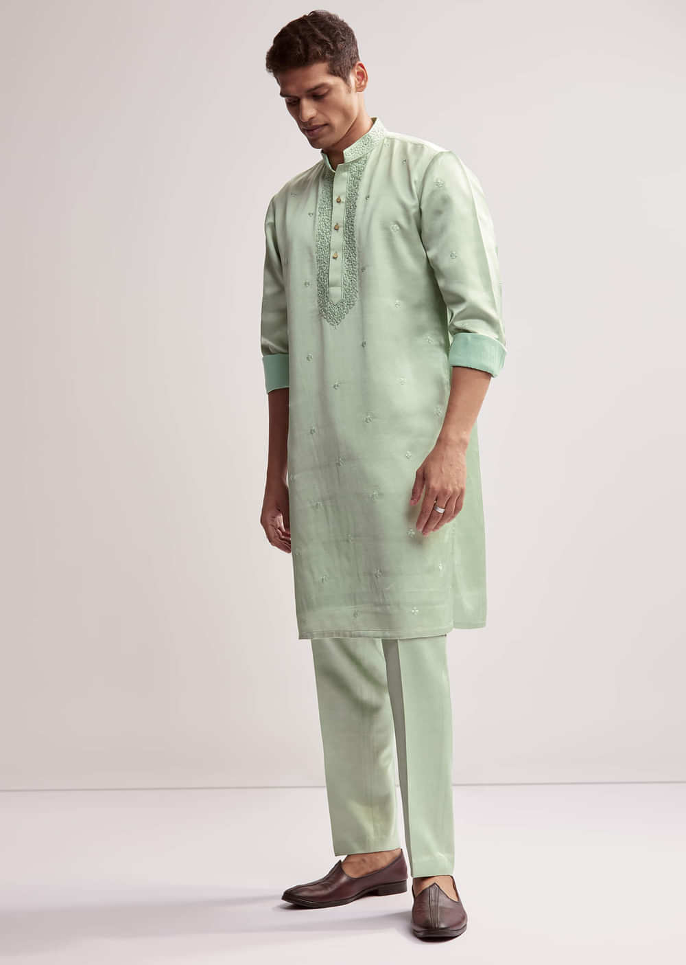 Mint Green Satin Blend Kurta Set For Men With Zardosi Embroidery