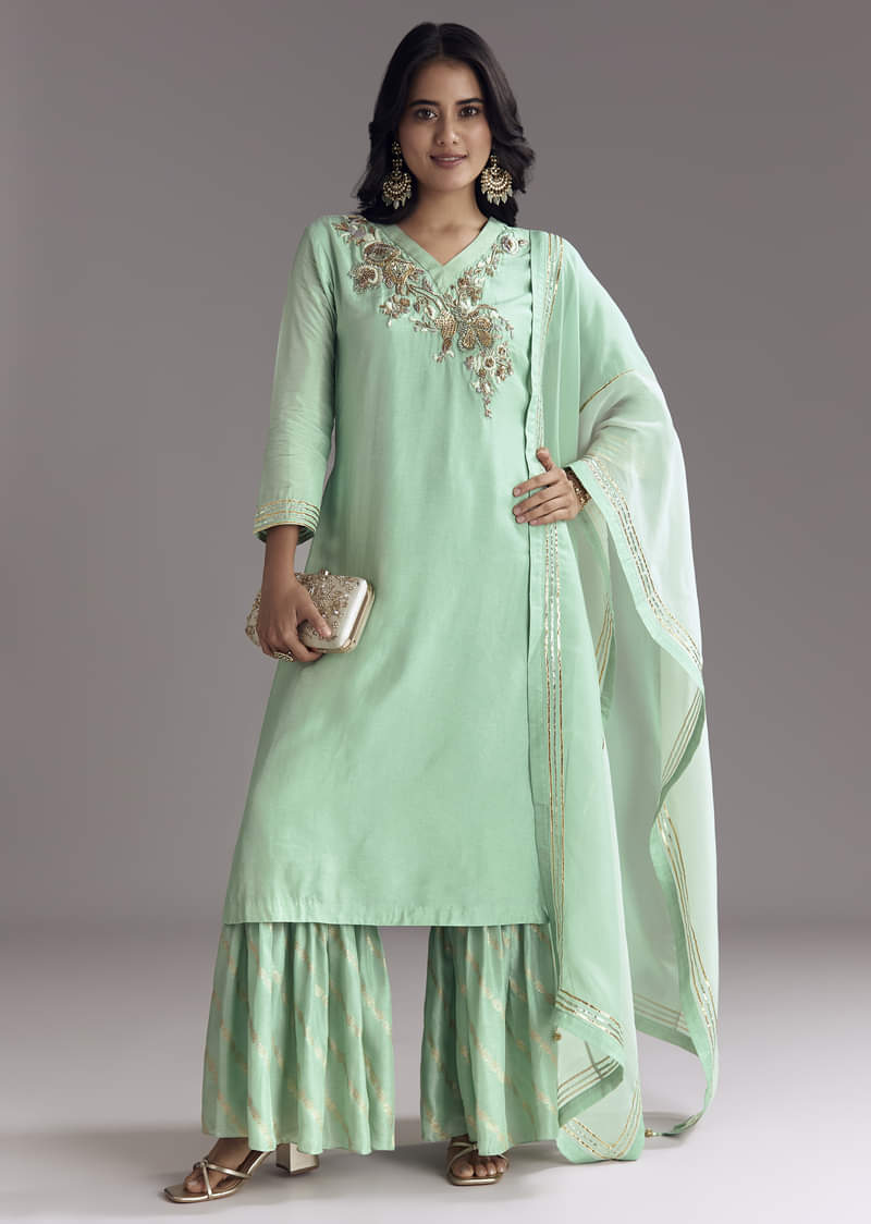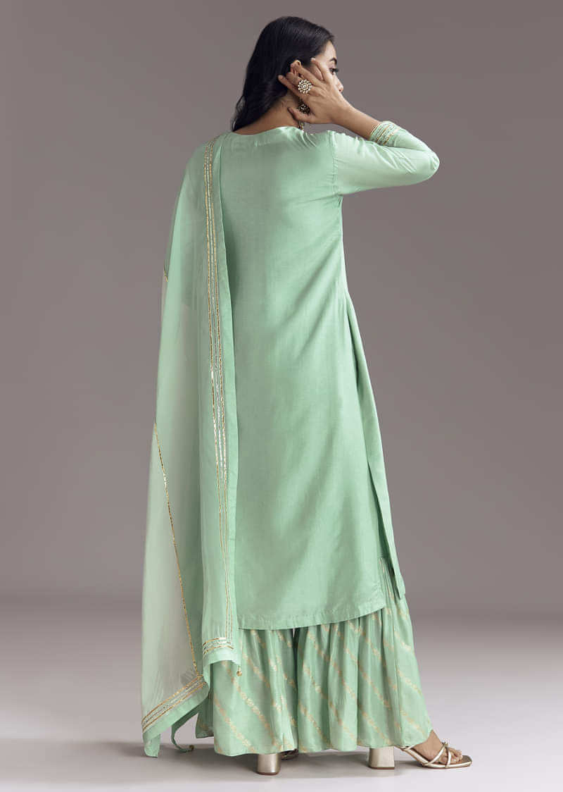 Mint Green Silk Kurta Sharara Set With Gotta Work