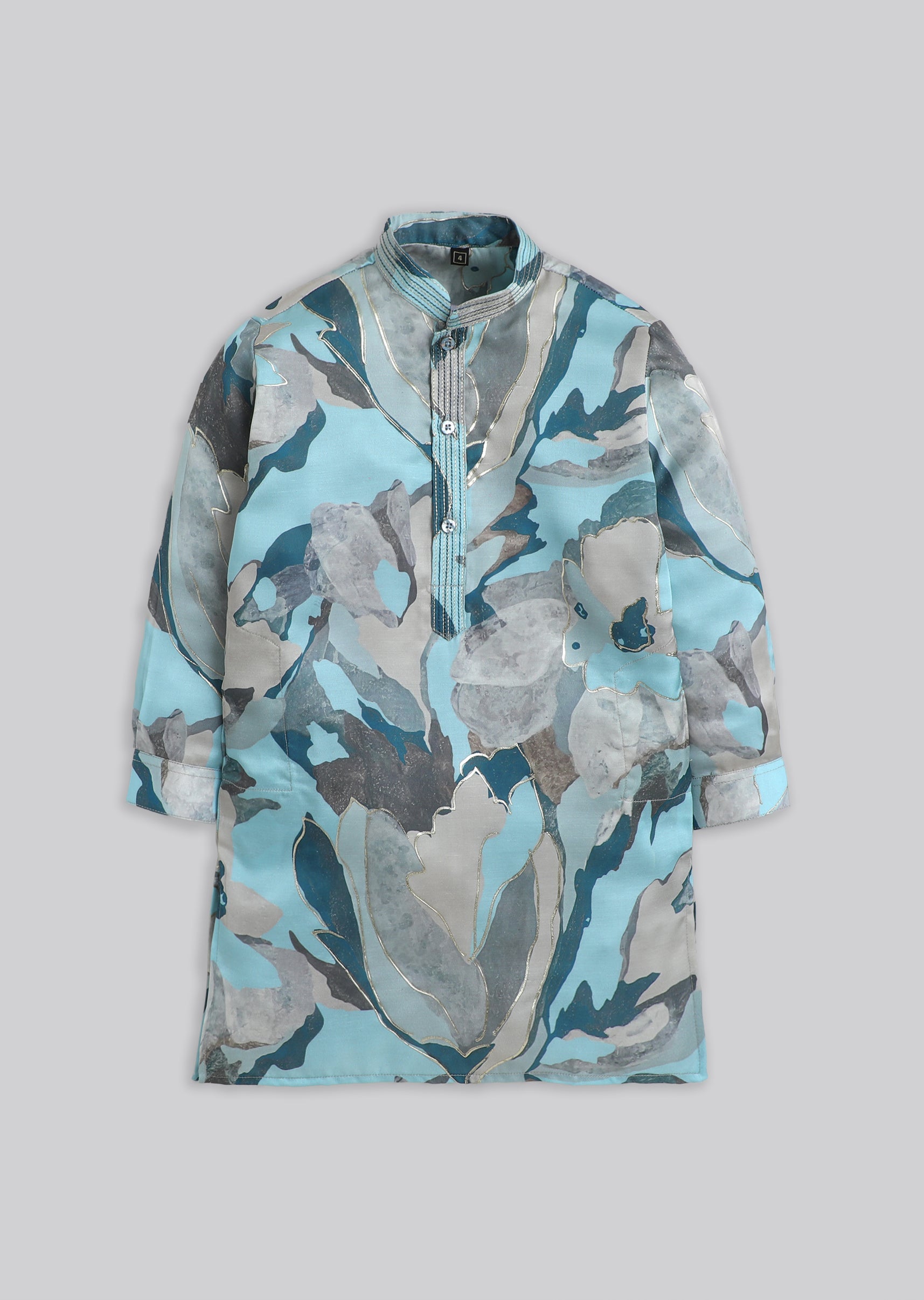 A festive cotton kurta set featuring a multi abstract print, styled with a mandarin collar and front buttons. Comes with matching pants—easy for kids and great for celebrations. Awarded as the Most Trusted Brand, we're delivering styles you love, just as promised.