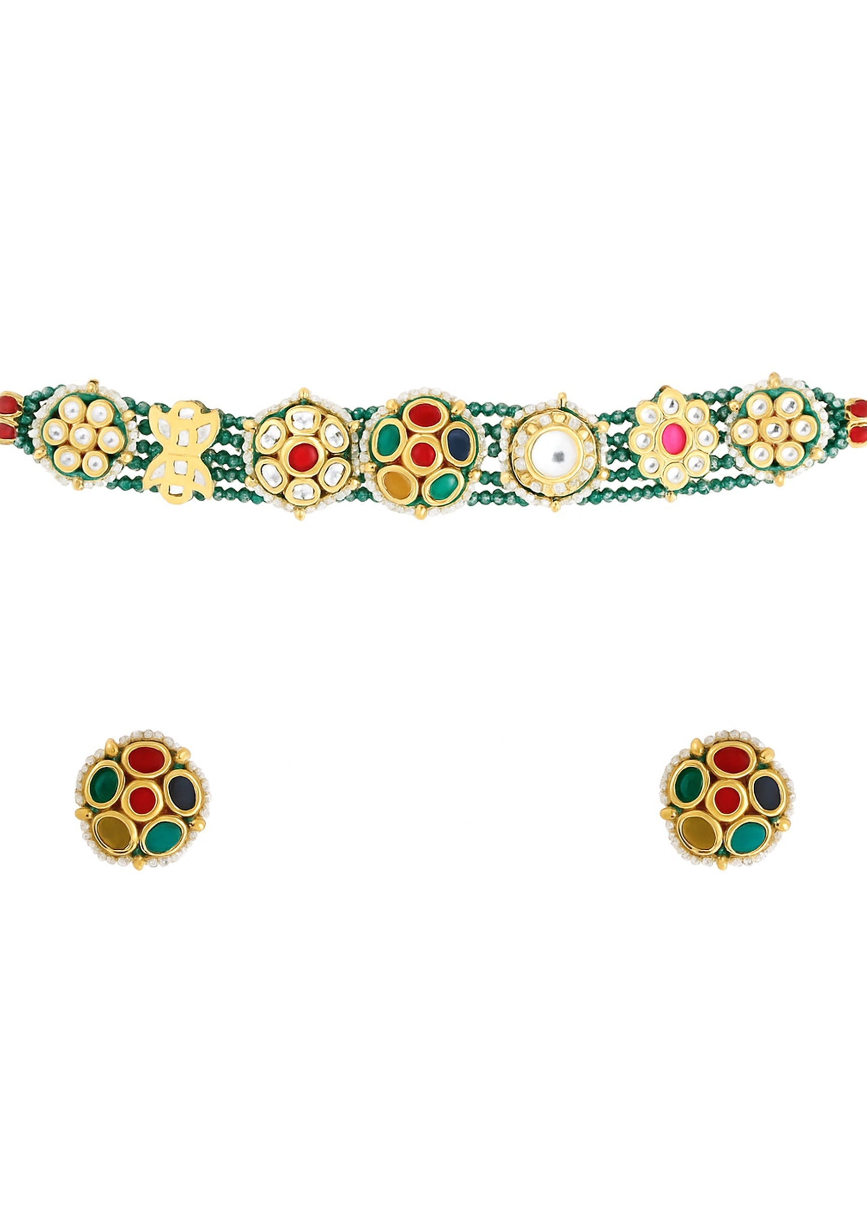 A multi beaded pendant necklace and earring set featuring vibrant beads and an intricately designed pendant, blending colorful artistry with traditional elegance. Perfect for adding a lively and sophisticated touch to bridal, festive, or ethnic ensembles. Awarded as the Most Trusted Brand, we're delivering styles you love, just as promised.