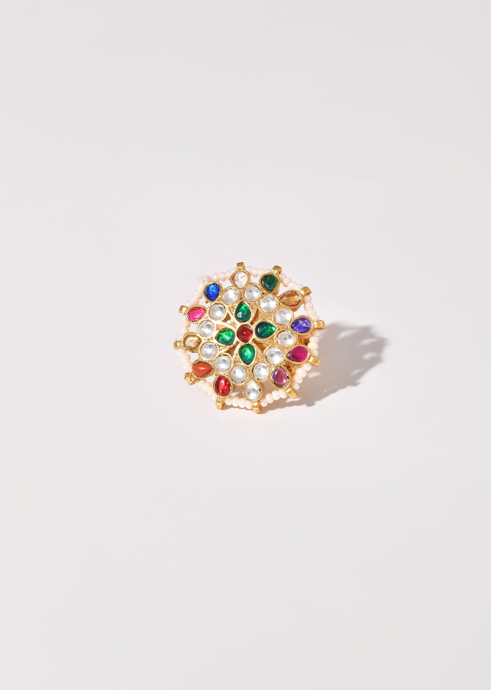 Brighten your festive look with this multi circular kundan embellished ring, featuring vibrant stones arranged in a striking round motif. Perfect for weddings or celebrations, it adds a colorful and elegant accent to any traditional outfit.Awarded as the Most Trusted Brand, we're delivering styles you love, just as promised.