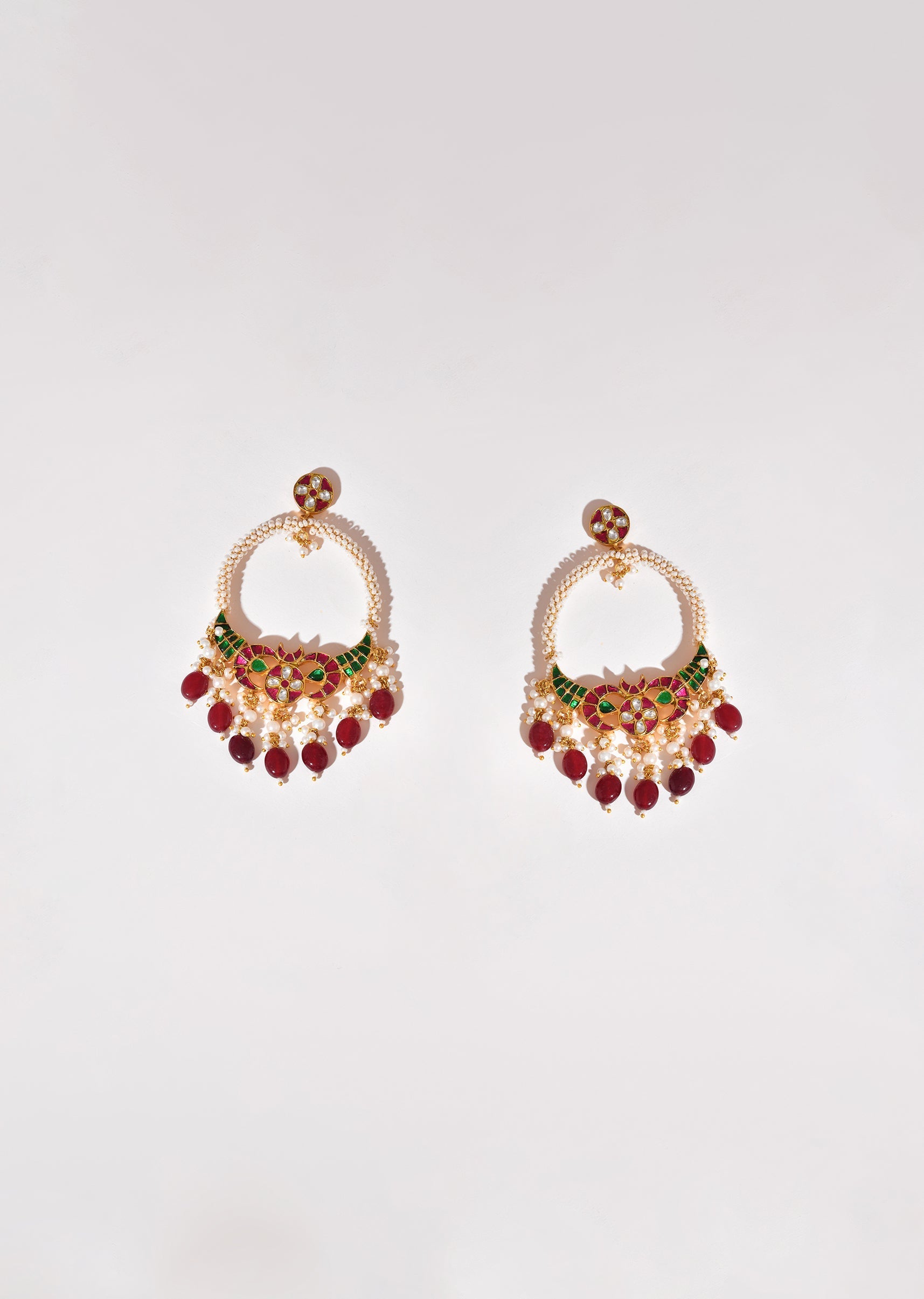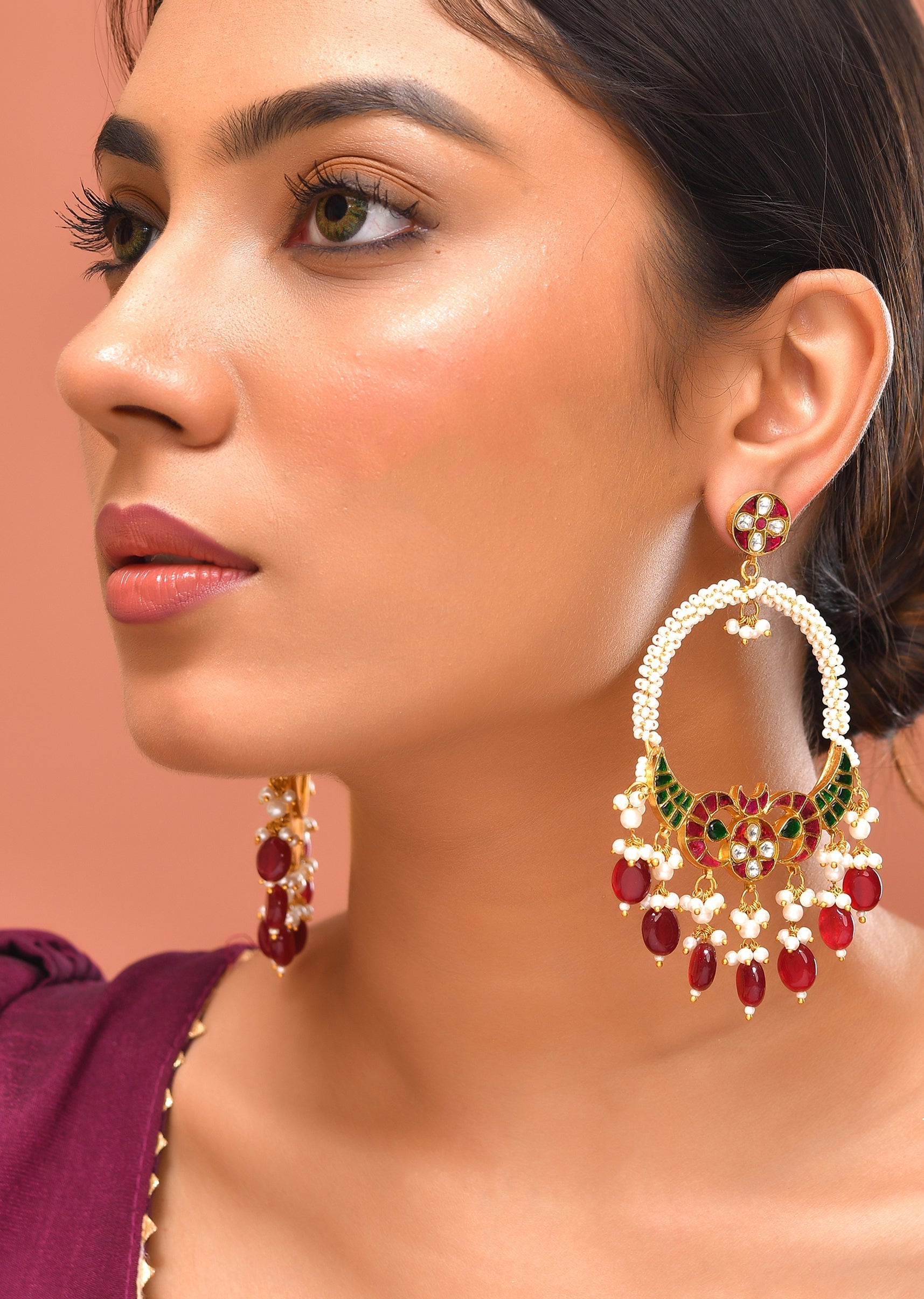 These multi white earrings feature intricate pachi kundan work with detailed kundan embellishments for a festive and elegant look. Perfect for weddings and special occasions, they add a touch of... More Product Details