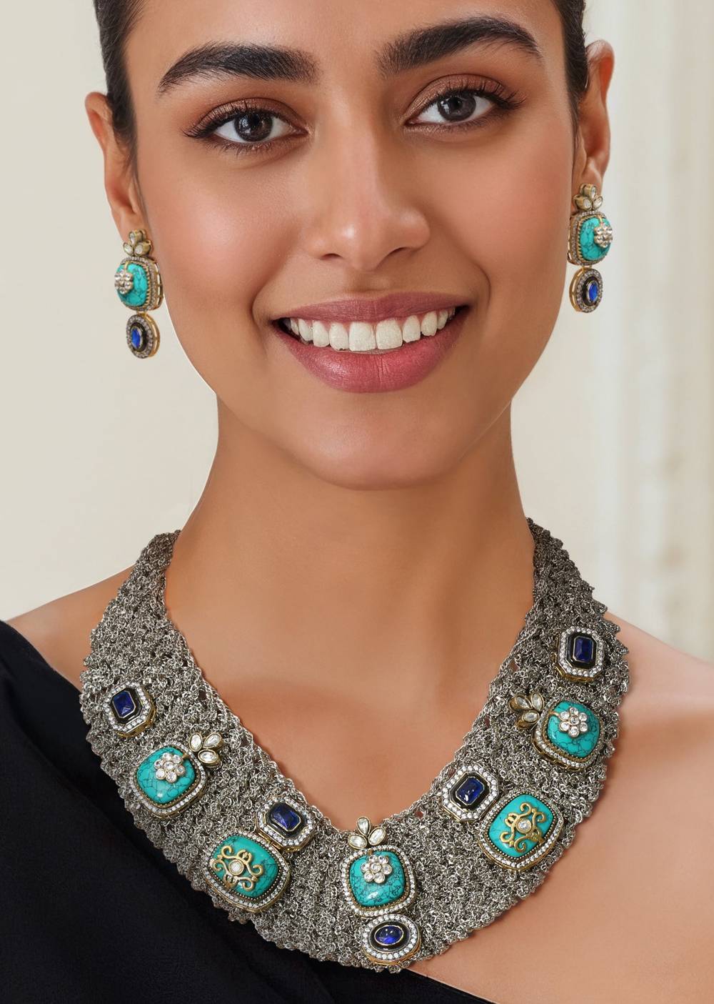 Complements structured or solid-colored outfits, making the geometric design the focal point of your look.Fit Tips: Designed for balanced wear, ensuring the necklace and earrings sit comfortably and securely throughout the event.