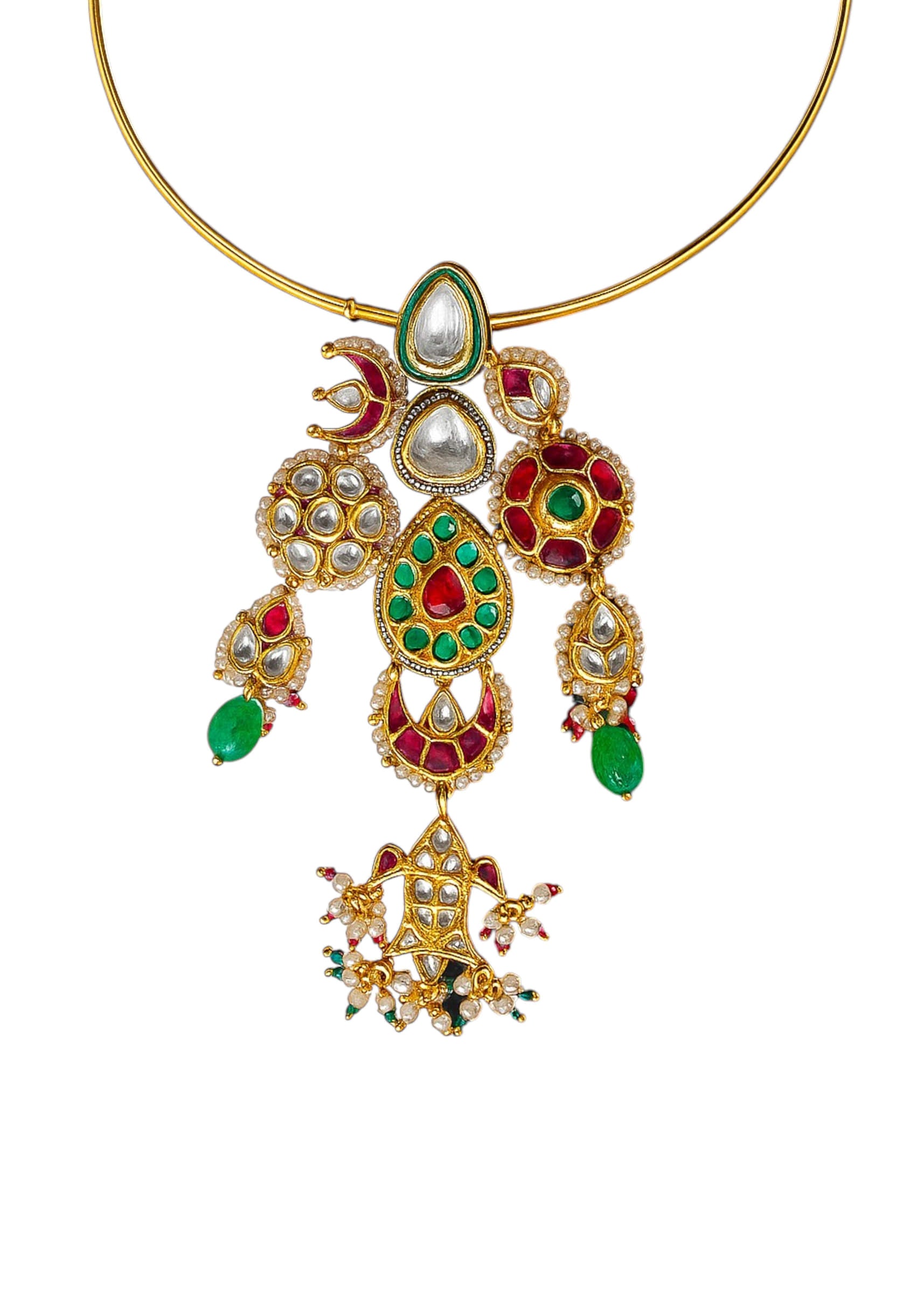 A multi fusion tiered pendant statement necklace featuring layered pendants adorned with vibrant stones and detailed craftsmanship, blending artistic modernity with traditional grace. Perfect for adding a bold and luxurious... More Product Details