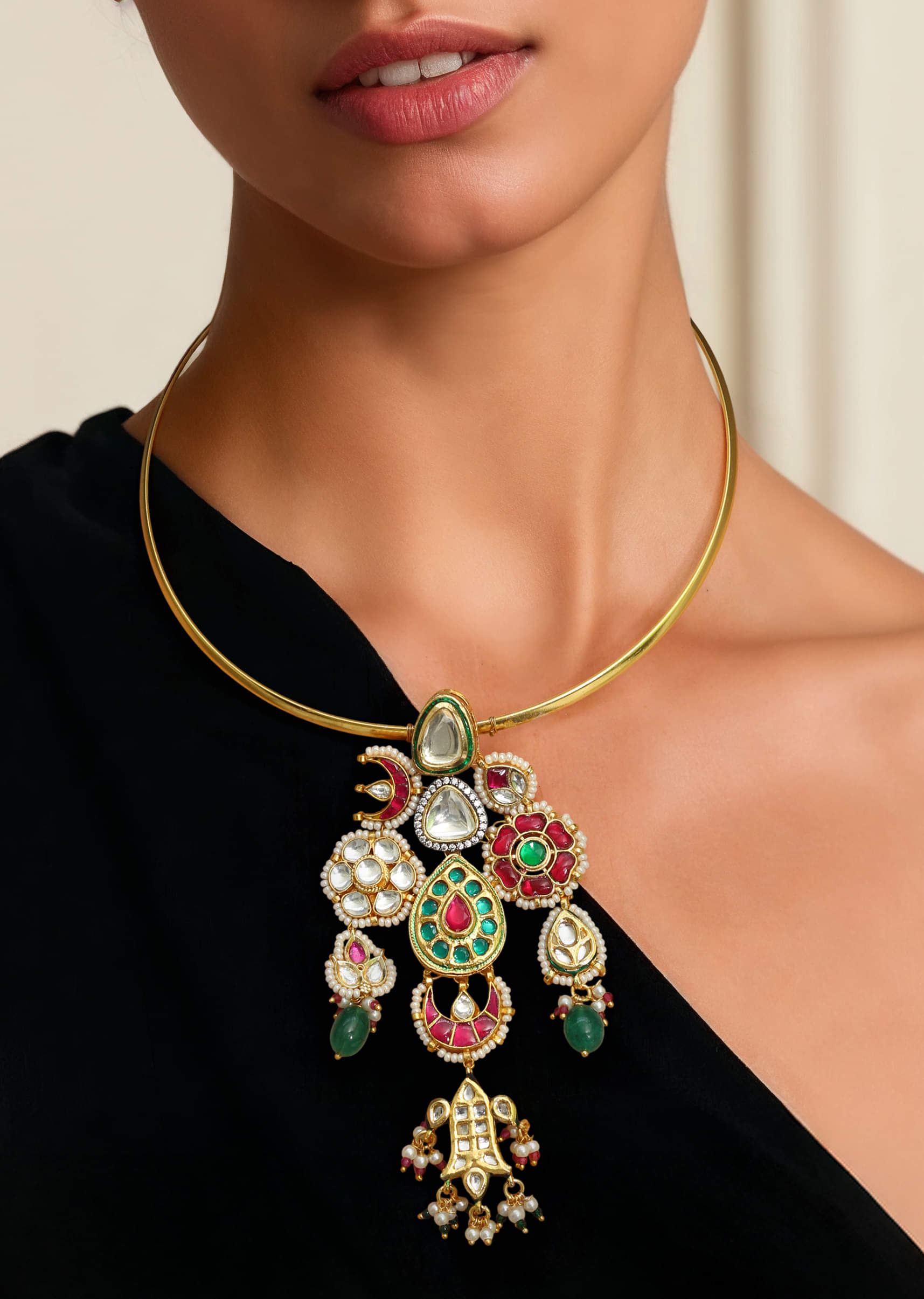 Pairs beautifully with minimalist or monotone outfits, allowing the tiered pendants to command attention.Fit Tips: Evenly tiered design ensures balanced weight distribution, offering comfort and secure wear throughout the event.