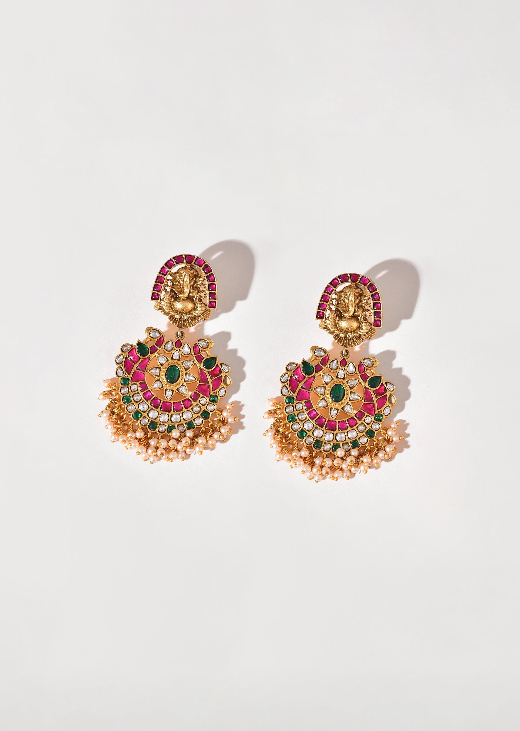 These multi red earrings feature intricate pachi kundan work with detailed embellishments for a vibrant and festive look. Perfect for weddings and special occasions, they add elegance and charm to... More Product Details