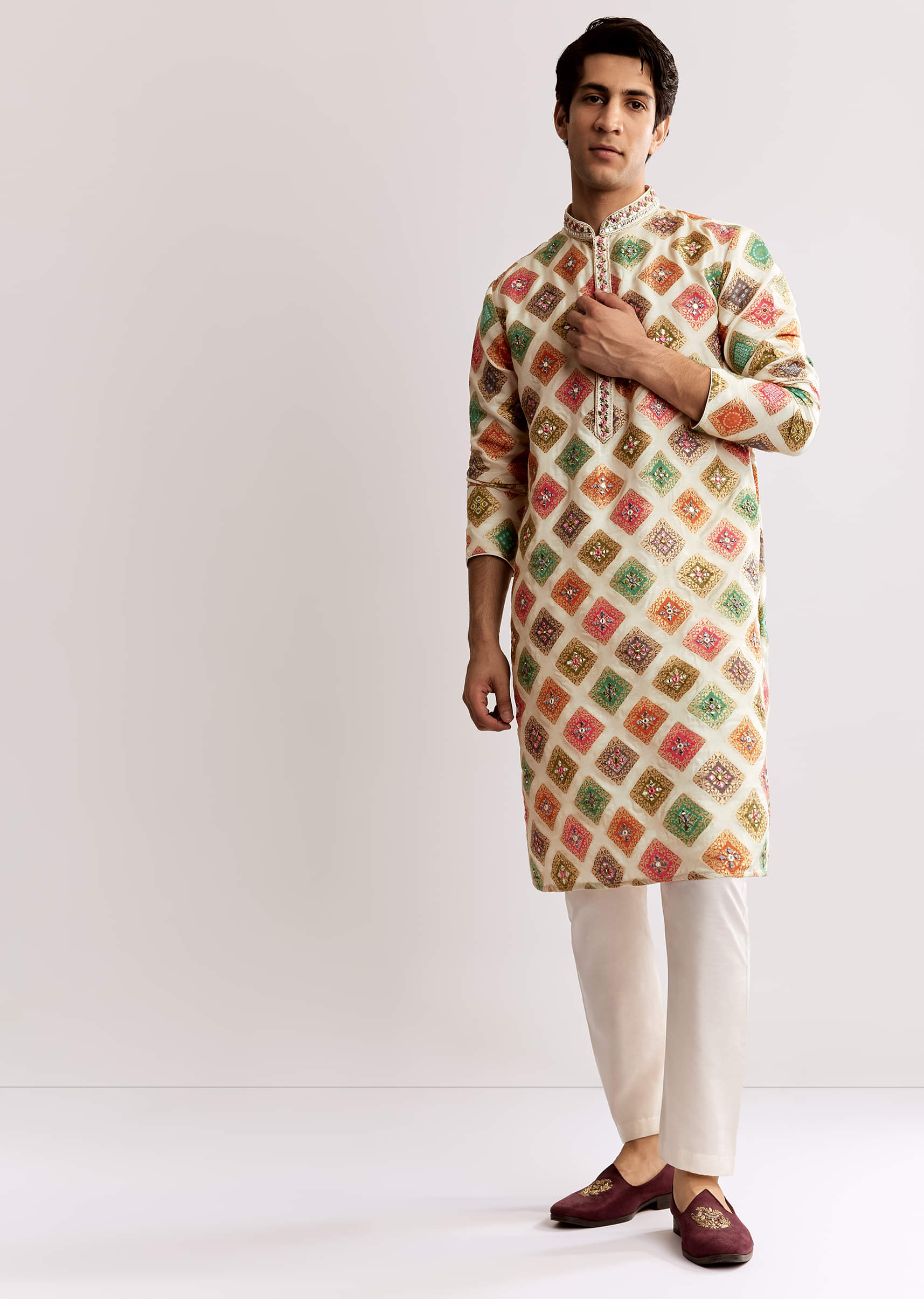 A Canvas Of MultiColor Silk This Kurta Set Stands Out With Its Vibrant Geometric Design Bold Youthful And Unforgettable.Awarded As The Most Trusted Brand We'Re Delivering Styles You Love Just As Promised.
