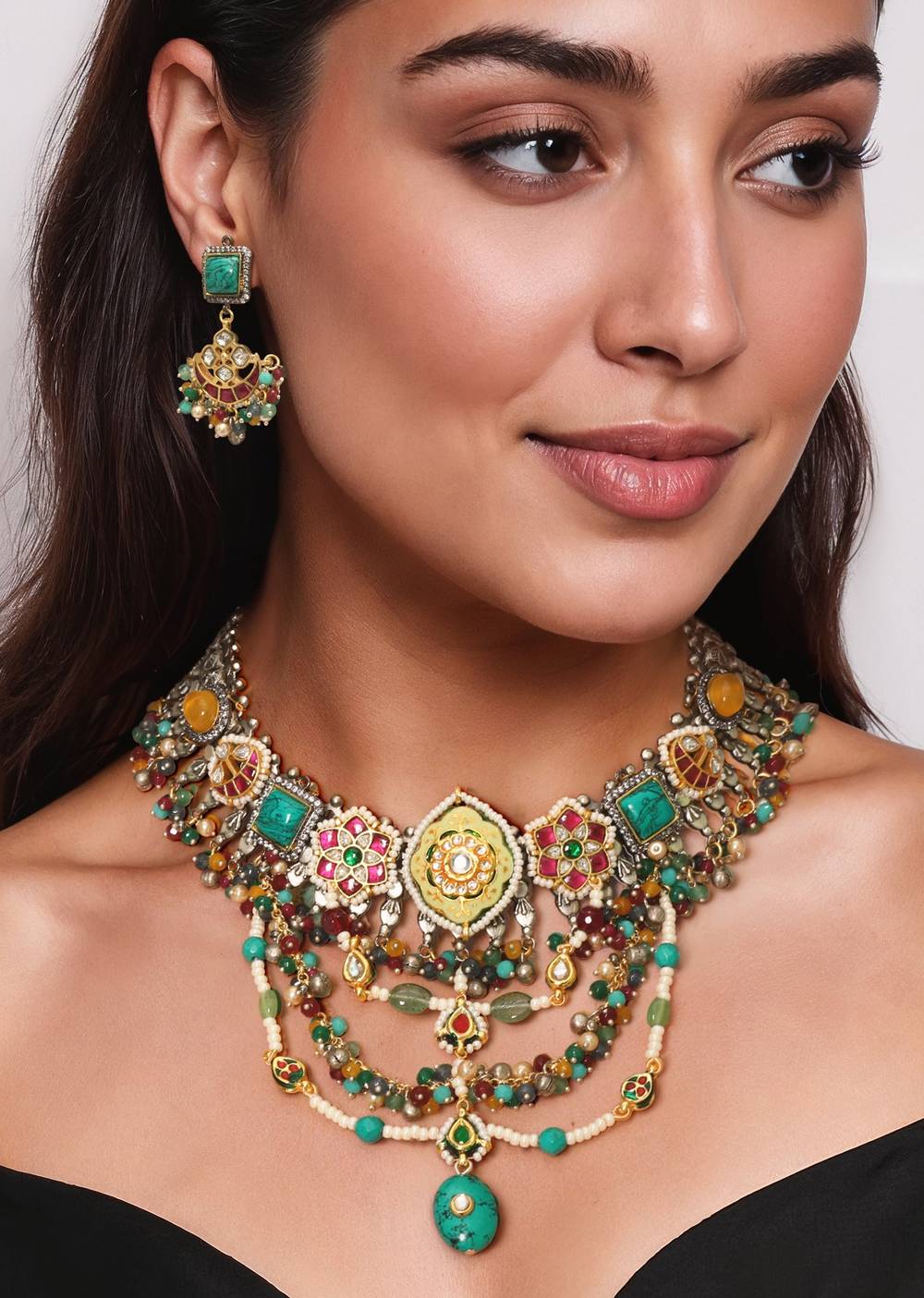Works beautifully with solid or neutral-toned outfits, letting the colorful stones take center stage.Fit Tips: Designed to rest smoothly on the neckline, ensuring balanced weight and comfortable wear for extended occasions.
