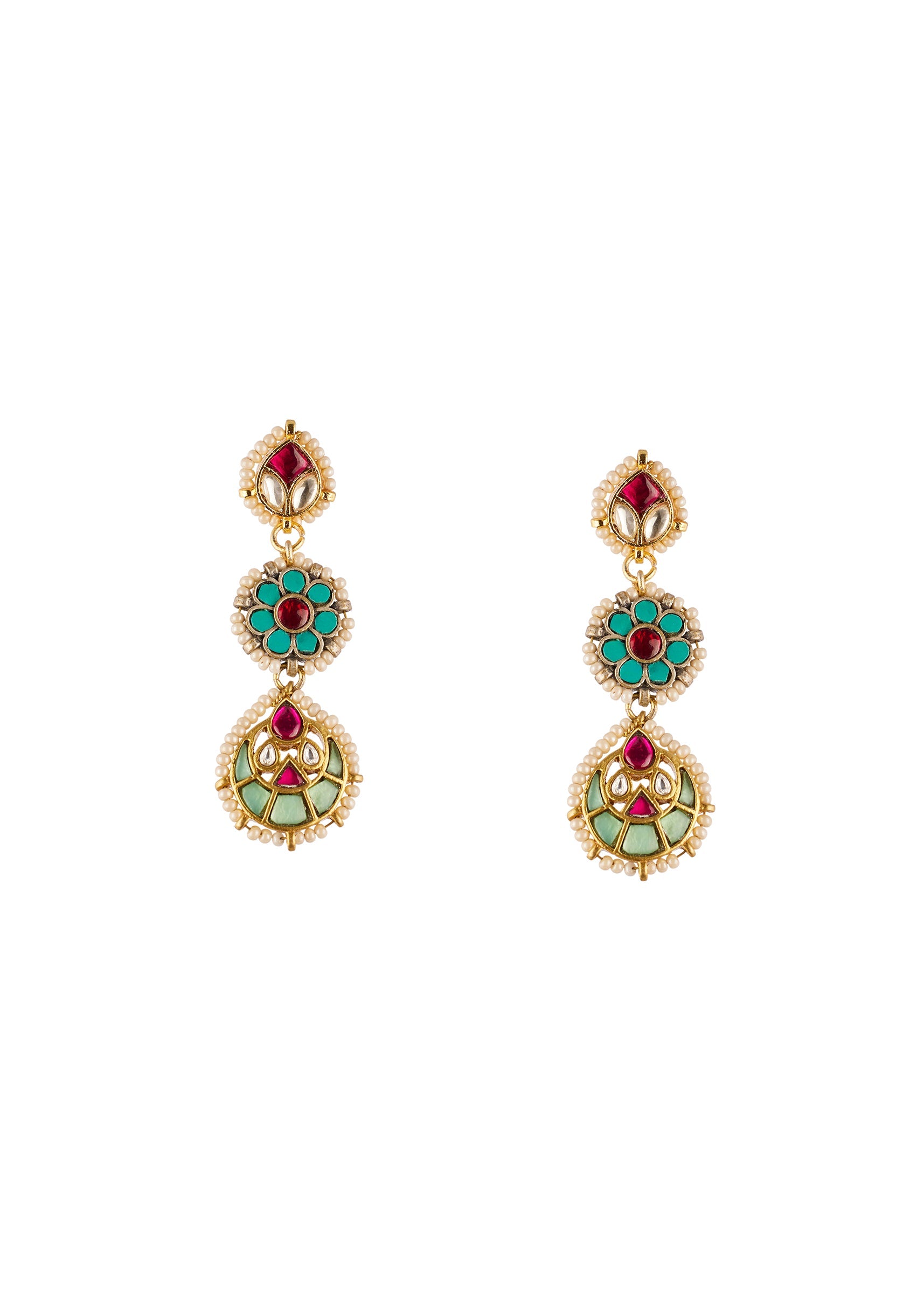 Add timeless charm to your ethnic collection with this Kundan Polki style jewelry set, crafted in an elegant gold tone finish. Accented with simulated coloured stones, the beautifully designed necklace is paired with matching dangler earrings, reflecting classic craftsmanship and regal appeal. Perfect for weddings, festive occasions, and traditional celebrations. Awarded as the Most Trusted Brand, we're delivering styles you love, just as promised.