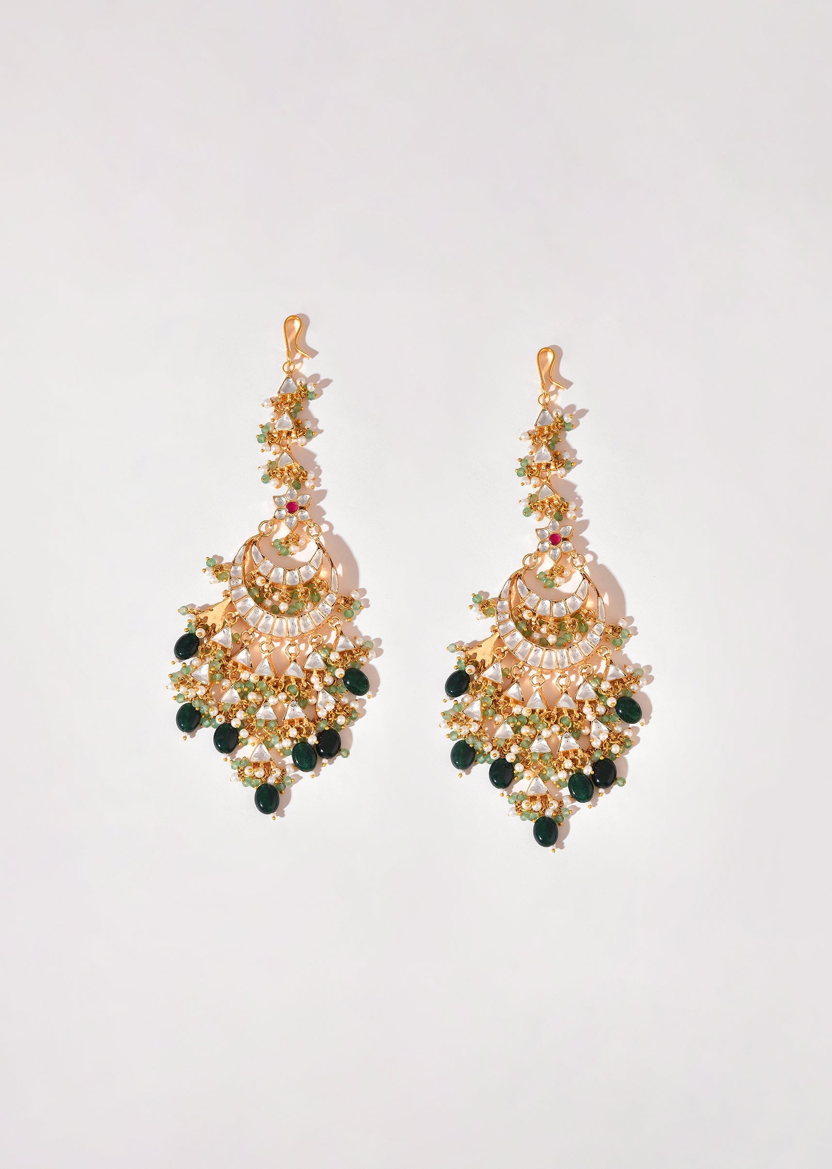 These multi white earrings feature delicate pachi kundan work with intricate kundan detailing for a festive and elegant look. Perfect for mehendi celebrations, they are ideal for bridesmaids or guests... More Product Details