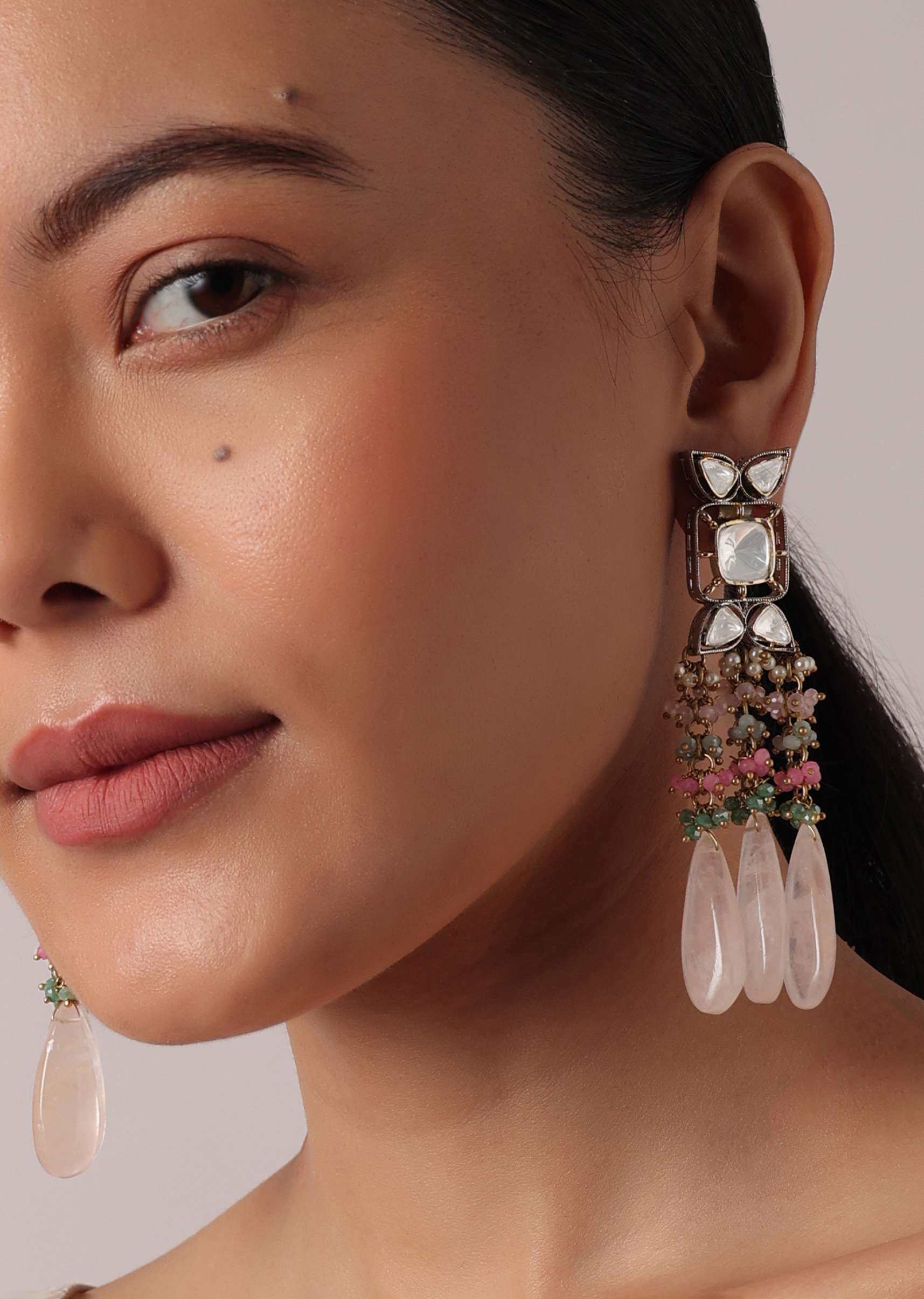 This gorgeous two tone finish necklace set can be styled beautifully with all your ethnic outfits. Embedded with delicate kundan and polki stone it displays meticulously craftsmanship. Adorned with geometric... More Product Details