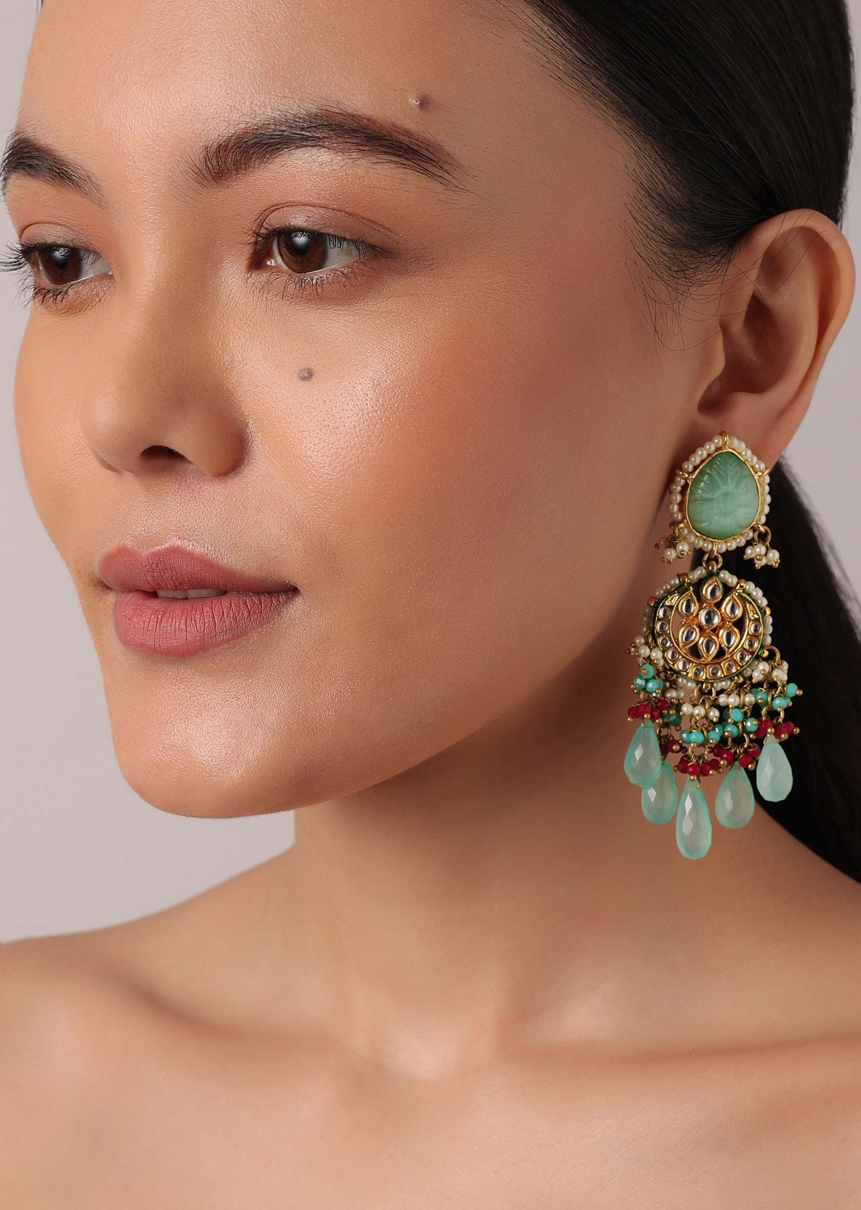 Multicolor Pendant Choker Set With Green Bead Drops And Meenakari Work