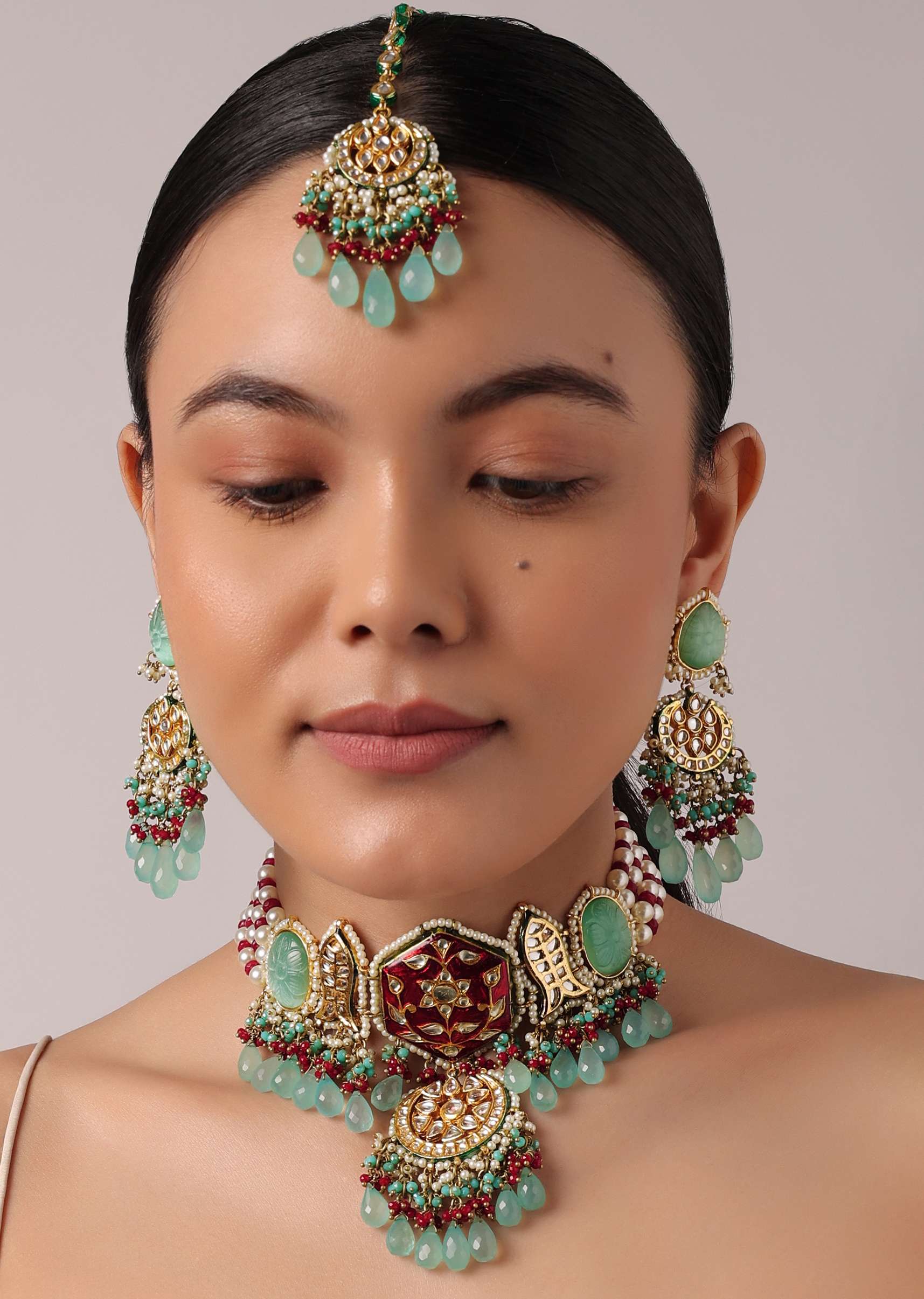 Pack Contains: 1 Necklace & 1 pair of Earrings & 1 pcs maangtika